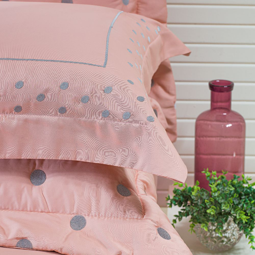 Jogo Cama Lençol Garland Queen Bordado 100% Algodão Acetinado 400 Fios 4 Peças - Rosê e Cinza