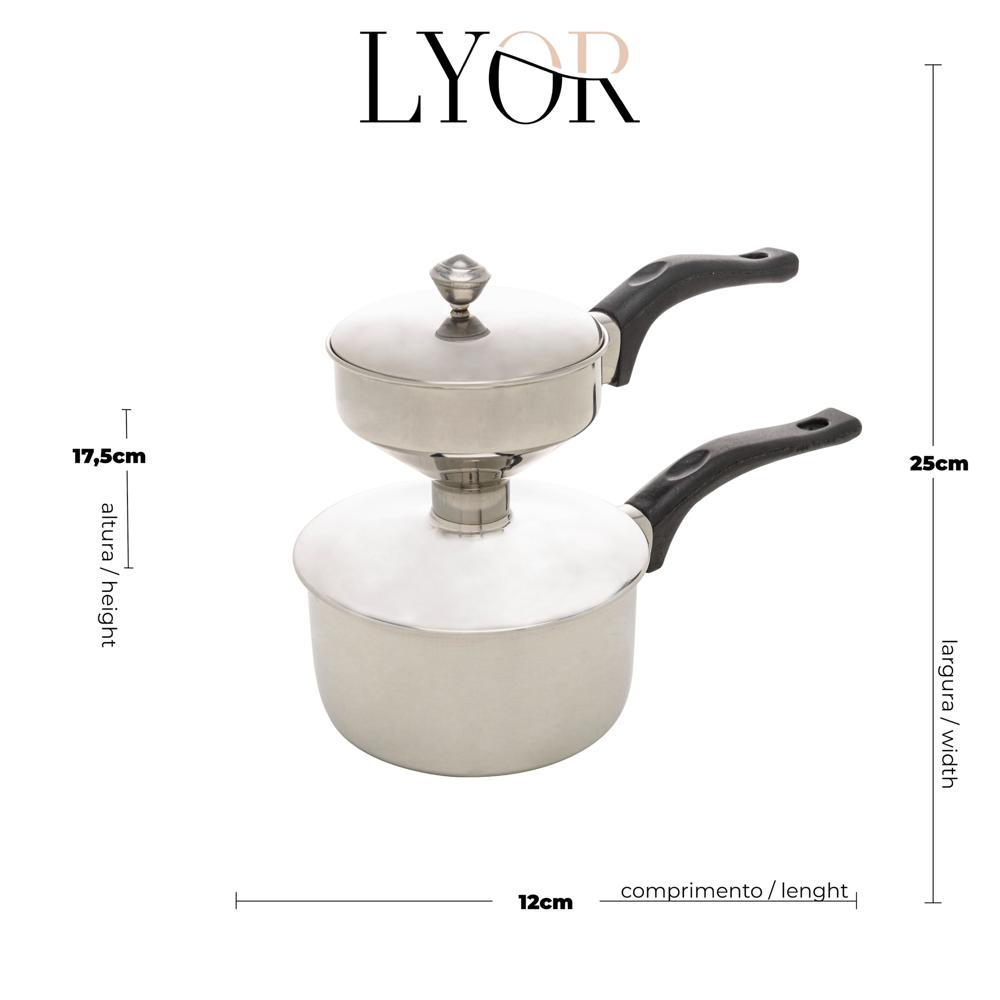 A Cuscuzeira Individual de Aço Inox da Lyor é muito mais do que um simples utensílio de cozinha, é a combinação perfeita de funcionalidade e durabilidade para facilitar o preparo do seu cuscuz favorito. Com dimensões de 25cm x 12cm x 17,5cm, esta cuscuzeira oferece praticidade e eficiência para o seu dia a dia na cozinha.Características: Material de Qualidade em Aço Inox: Garante resistência e durabilidade, além de facilitar a limpeza e manutenção da cuscuzeira. Design Moderno e Funcional: Com acabamento em aço inox, esta cuscuzeira adiciona um toque de elegância à sua cozinha. Tamanho Ideal para Porções Individuais: Permite preparar cuscuz na medida certa para uma pessoa, tornando o processo mais prático. Acompanha Tampa com Puxador: Facilita o manuseio da cuscuzeira, garantindo segurança e praticidade durante o preparo. Fácil de Limpar e Armazenar: Com dimensões compactas, esta cuscuzeira é fácil de limpar e guardar após o uso, otimizando o espaço na sua cozinha.A Cuscuzeira Individual de Aço Inox da Lyor é a escolha perfeita para quem busca qualidade, praticidade e elegância na hora de preparar e servir cuscuz. Surpreenda-se com a facilidade e eficiência deste utensílio que vai transformar a sua experiência culinária. Adicione um toque de sofisticação à sua cozinha com a custuqueira da Lyor.Prepare cuscuz com facilidade e elegância com a Cuscuzeira Individual de Aço Inox da Lyor. Resistente, fácil de limpar e ideal para porções individuais, este utensílio traz praticidade para sua cozinha. Transforme sua experiência culinária com sofisticação.