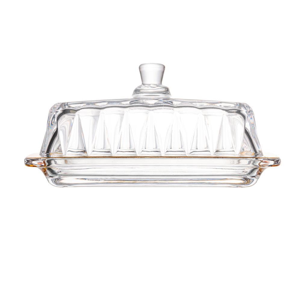 Manteigueira de Cristal Fio de Ouro Radial 18cmx10,5cmx 8cm