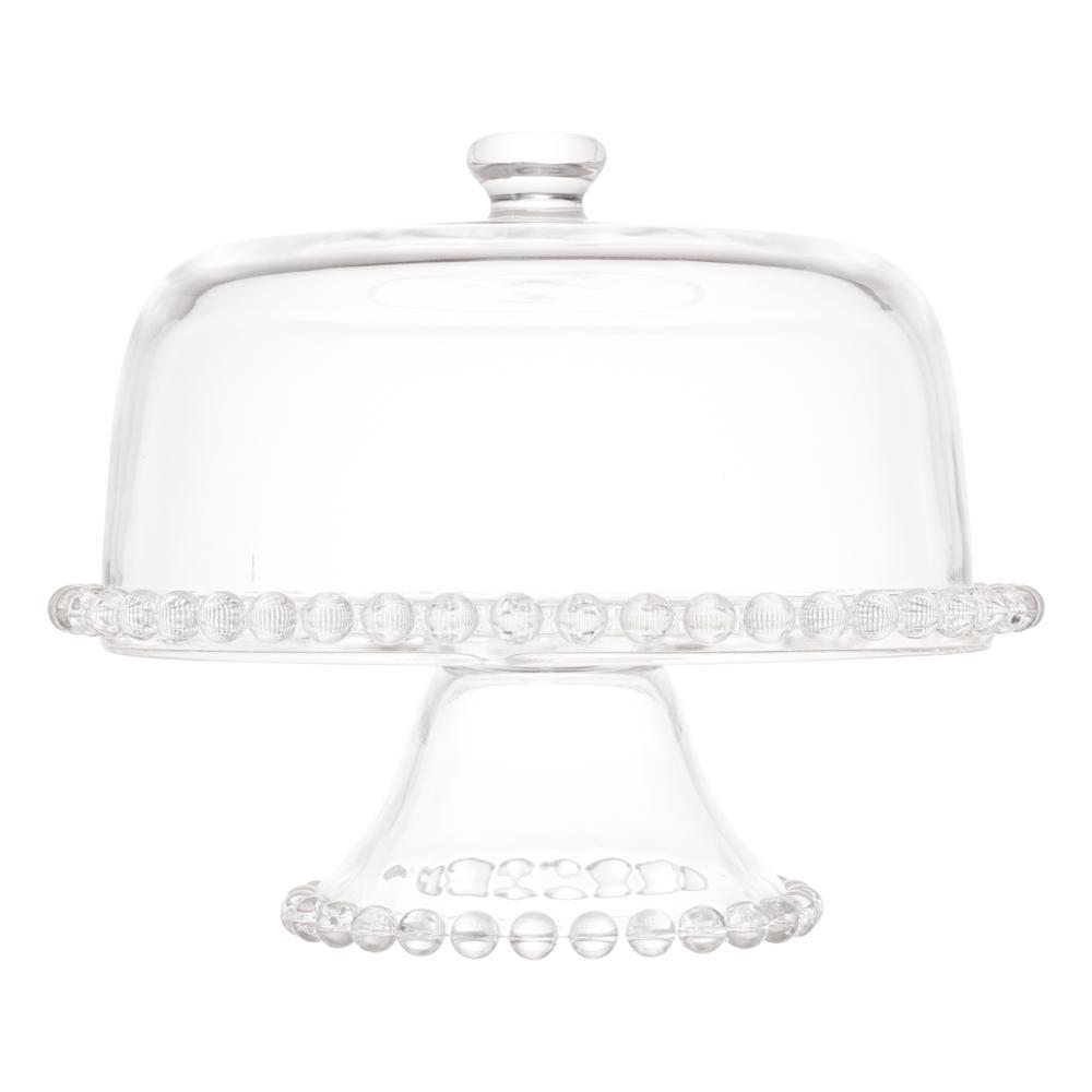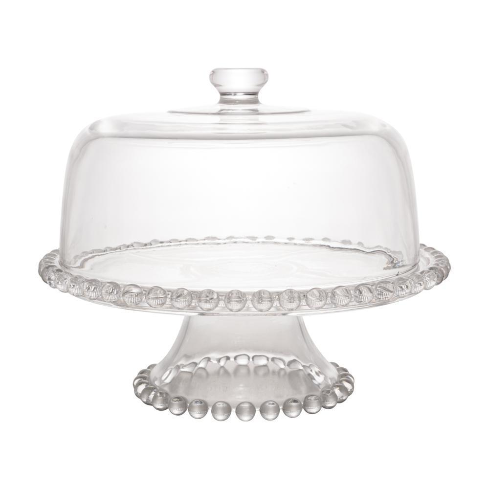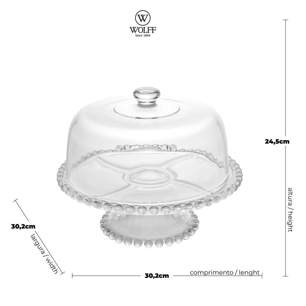 Prato para Bolo com Pé de Cristal e Tampa Pearl 31cm x 25cm - Wolff