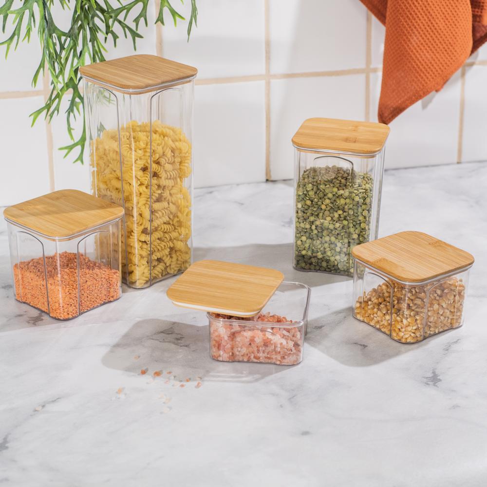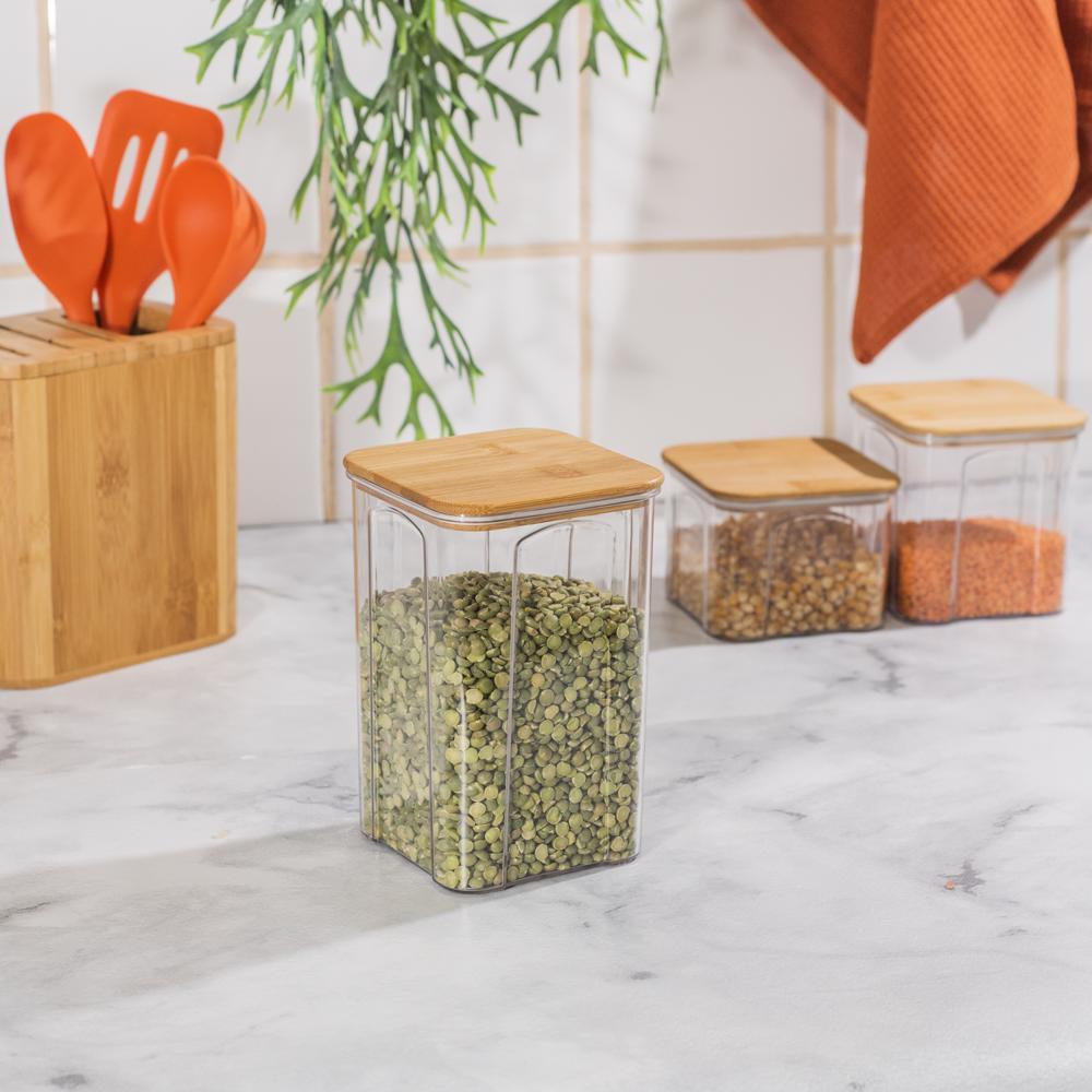 Pote 1,4Ml De Plástico Translúcido e Tampa De Bambu Quadrado