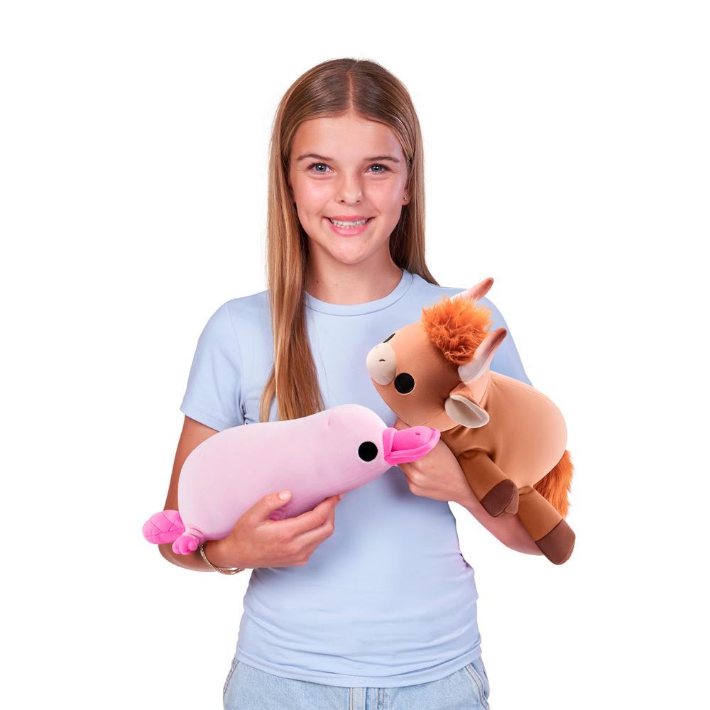 A Pelúcia Hug-A-Lumps Pequena 0,75kg é perfeita para quem busca conforto com um toque de diversão. Com peso suave e acolhedor, ela proporciona a sensação de um abraço de verdade, ajudando a aliviar o estresse e trazendo bem-estar em qualquer momento do dia. Feita com pelúcia supermacia, é ideal para relaxar, dormir melhor ou simplesmente curtir o carinho de um amigo fofinho.São 7 personagens encantadores para conhecer: Lagosta Lenny, Vaca Marrom Holly, Vaca Clover, Urso Marinho Sage, Peixe-Bolha Bob, Capivara Connie e Axolote Ally — cada um com seu próprio estilo, cores vibrantes e muita personalidade. Compacta e fácil de levar para onde quiser, a Hug-A-Lumps Pequena é a companhia perfeita para todas as idades. Mais do que uma pelúcia, é um abraço que reconforta, acalma e encanta.