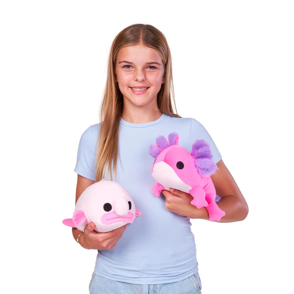 A Pelúcia Hug-A-Lumps Pequena 0,75kg é perfeita para quem busca conforto com um toque de diversão. Com peso suave e acolhedor, ela proporciona a sensação de um abraço de verdade, ajudando a aliviar o estresse e trazendo bem-estar em qualquer momento do dia. Feita com pelúcia supermacia, é ideal para relaxar, dormir melhor ou simplesmente curtir o carinho de um amigo fofinho.São 7 personagens encantadores para conhecer: Lagosta Lenny, Vaca Marrom Holly, Vaca Clover, Urso Marinho Sage, Peixe-Bolha Bob, Capivara Connie e Axolote Ally — cada um com seu próprio estilo, cores vibrantes e muita personalidade. Compacta e fácil de levar para onde quiser, a Hug-A-Lumps Pequena é a companhia perfeita para todas as idades. Mais do que uma pelúcia, é um abraço que reconforta, acalma e encanta.