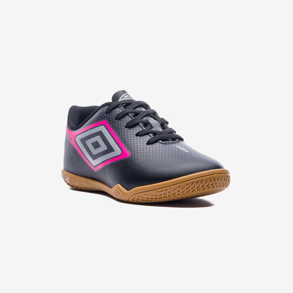 Indicada para os jogadores mirins iniciantes, a Chuteira Futsal Umbro Cannon Jr segue o mesmo design autêntico e ousado do modelo adulto, produzida em material de fácil limpeza e manutenção. O modelo exibe artes gráficas personalizadas em cores vibrantes que adicionam o melhor do estilo Umbro aos seus treinos e partidas.Seu cabedal é construído em material sintético laminado com aplicação de grafismo reticulado e forro em tecido de poliéster. Possui Diamante Umbro na lateral estilizado com a assinatura do modelo, atacador convencional e palmilha interna em EVA forrado. O solado de futsal é construído em blenda de TPU e PVC.