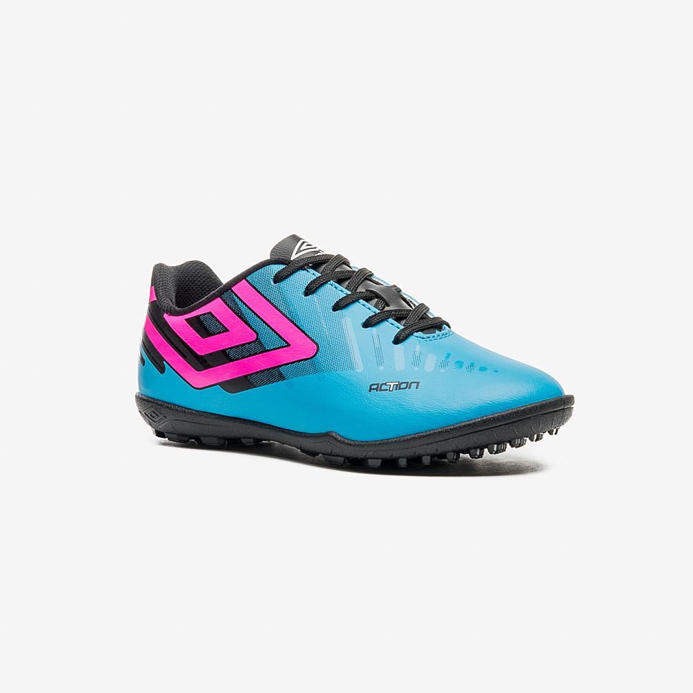 Indicada para jogadores juvenis iniciantes que se destacam nos treinos e partidas, a Chuteira Society Umbro Action Jr exibe artes gráficas personalizadas aplicadas em camadas, com efeito degradê, para um visual autêntico e moderno no melhor estilo Umbro.Cabedal confeccionado em material laminado de fácil limpeza e manutenção. Possui grafismos em “layers” com aplicação de verniz incolor sobre as artes, Diamante Umbro em destaque na lateral, assinatura do modelo na parte frontal e palmilha interna macia em EVA com tecido forrado. O solado de society HG é composto por blenda de PVC e TPU, que oferece aderência ao solo e durabilidade.