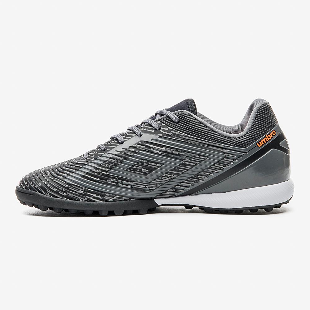 Indicada para jogadores iniciantes e intermediários, a Chuteira Society Umbro Gravity segue um design marcante, moderno e funcional, com texturas no cabedal que melhoram o grip e domínio da bola. A lingueta é construída em formato tipo “morcego”, fixada na área de montagem do solado, que proporciona um ajuste adaptável e confortável aos diferentes tipos de pé, além de garantir mais segurança. Cabedal confeccionado em material laminado com alta frequência e forro traseiro em mesh com acabamento luvado no colarinho para oferecer maior resistência à abrasão. Possui língua em tecido com elastano que “abraça” o pé, serigrafia diferenciada em degradê com área em verniz para um contraste entre brilho e fosco, Diamante Umbro em destaque nas laterais e palmilha interna macia em EVA forrado. O solado de society Hexa HG traz entressola em EVA injetado e soleta em TPU com sistema de travas hexagonais, que garante tração e durabilidade.