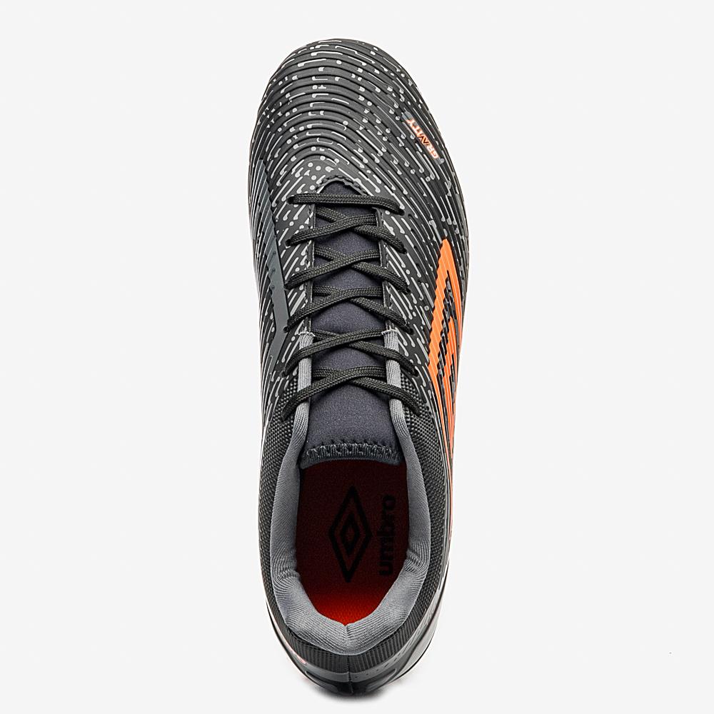 Indicada para jogadores iniciantes e intermediários, a Chuteira Campo Umbro Gravity segue um design marcante, moderno e funcional, com texturas no cabedal que melhoram o grip e domínio da bola. A lingueta é construída em formato tipo “morcego”, fixada na área de montagem do solado, que proporciona um ajuste adaptável e confortável aos diferentes tipos de pé, além de garantir mais segurança. Cabedal confeccionado em material laminado com alta frequência e forro traseiro em mesh com acabamento luvado no colarinho para oferecer maior resistência à abrasão. Possui língua em tecido com elastano que “abraça” o pé, serigrafia diferenciada em degradê com área em verniz para um contraste entre brilho e fosco, Diamante Umbro em destaque nas laterais e palmilha interna macia em EVA forrado. O solado de campo Stealth FG de 10 travas altas e bicolores posicionadas, com trava central de tração e textura de base, é construído todo em TPU, que fornece tração e durabilidade.
