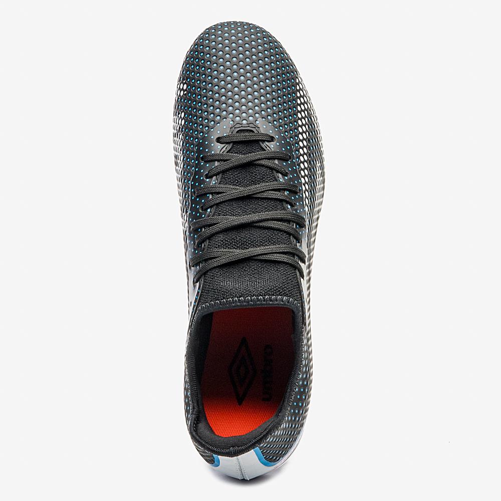 Inspirada no design da chuteira profissional Velocita Matrix, a Chuteira Campo Umbro Velocita IX Club segue o modelo slip-on de fácil calce com um visual marcante e moderno que se adequa a todos os estilos de jogadores iniciantes a intermediários. Seu cabedal em mesh com elastano na parte superior oferece máxima sensação de conforto e ajuste perfeito durante as partidas e treinos em campo. Cabedal confeccionado em material laminado com alta frequência e serigrafia assimétrica diversificada para cada variante. Possui mesh com elastano na área do peito do pé e na lingueta, atacador estilizado, Diamante Umbro inserido graficamente na lateral externa, Umbro Letter também inserido graficamente na lateral interna, lingueta em mesh com elastano, forro traseiro em mesh com acabamento superior em debrum para maior resistência à abrasão e palmilha interna macia em EVA forrado. O solado de campo STEALTH FG de 10 travas, com trava central de tração e textura de base, é construído todo em TPU com travas altas bicolores posicionadas.