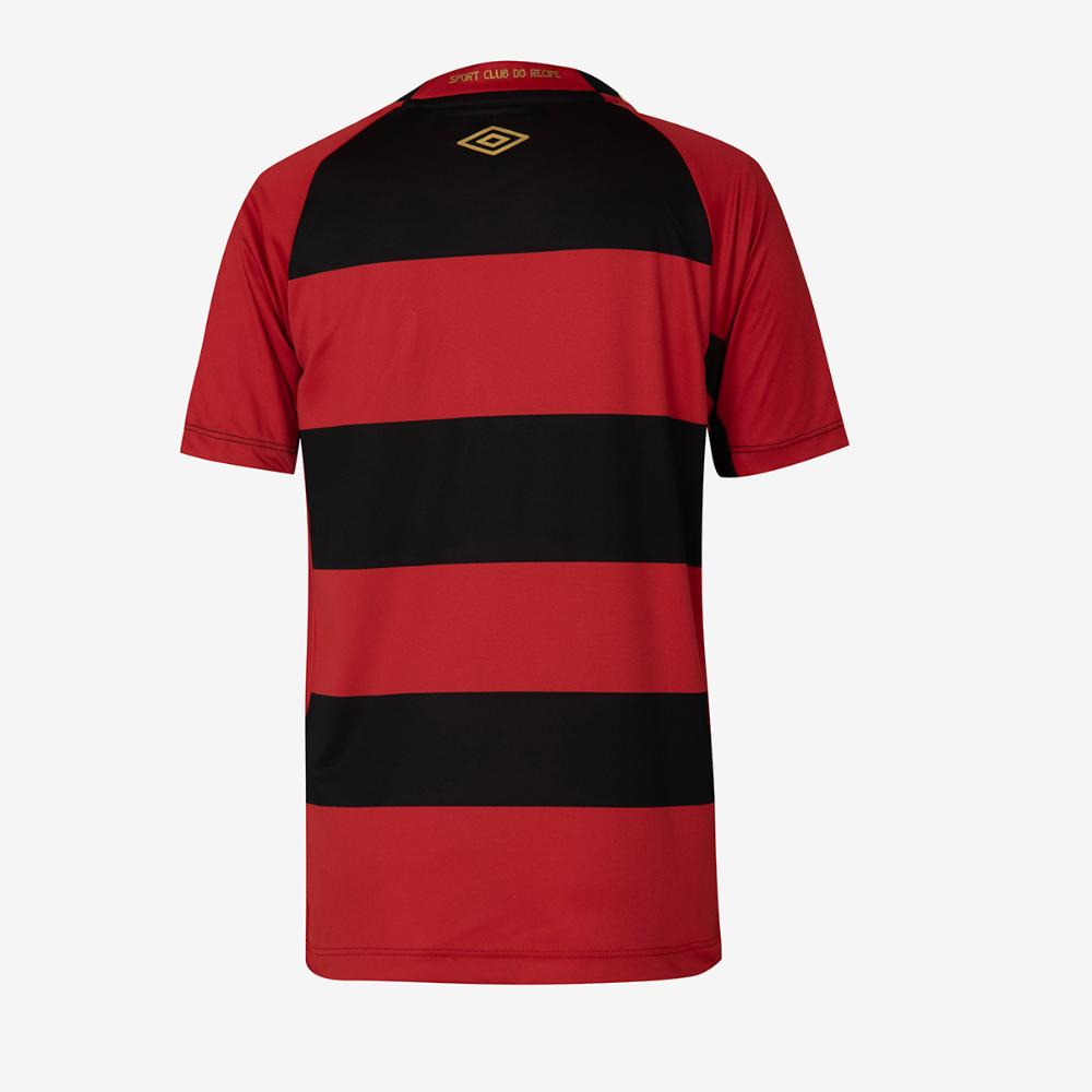 Celebre os 120 anos do Sport Club do Recife com a nova Camisa Juvenil Umbro Sport Oficial 1 2025! Com design especial, o manto rubro-negro homenageia a trajetória vitoriosa do clube, trazendo detalhes exclusivos para marcar essa data histórica. Vista a paixão e a tradição! - Modelagem fit com frente em tecido jacquard; - Recortes laterais, mangas e parte traseira em malha de poliéster reciclado com elastano; - Gola V em retilínea texturizada; - Tradicionais listras pretas e vermelhas no formato horizontal; - Grafismos exclusivos dos 120 anos aplicados na parte frontal da camisa; - Na parte interna da gola traz a frase “Uma razão para viver”; - Abaixo do escudo, os anos de fundação (1905) e do 120º aniversário (2025) do clube; - Patch comemorativo "120 anos do Sport" na barra.