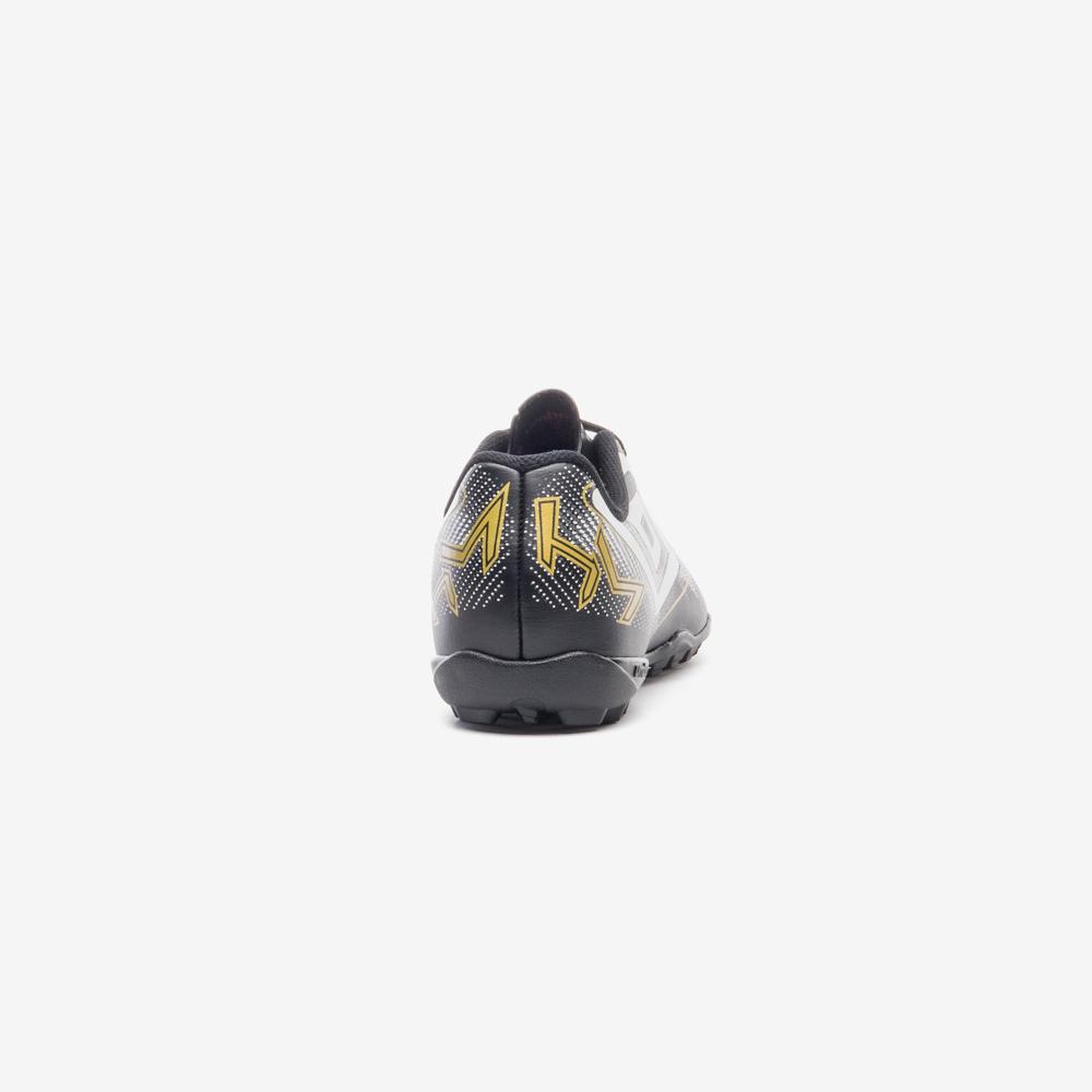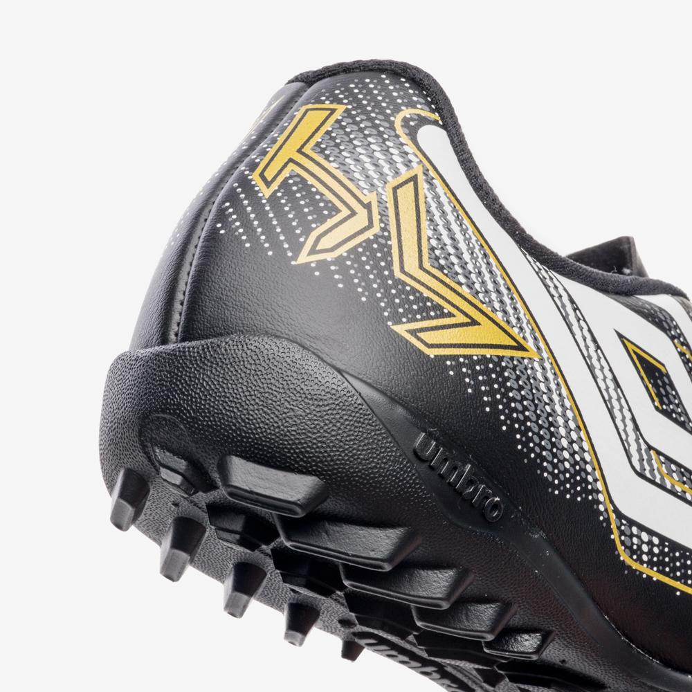 Chuteira Society Umbro Heatmap Jr: A Escolha Ideal para Jovens JogadoresSe você está em busca de uma chuteira que combine estilo, conforto e desempenho, a Chuteira Society Umbro Heatmap Jr é a escolha perfeita para jovens atletas. Com um design moderno e inovador, este modelo é ideal para jogadores iniciantes que desejam se destacar em campo.Design Moderno e AtraenteO visual da Chuteira Umbro Heatmap Jr é um dos seus grandes diferenciais. Com um grafismo que simula um mapa de calor, esta chuteira não só oferece uma aparência contemporânea como também reflete a energia e a paixão do futebol. O Diamante Umbro centralizado e as letras HM em destaque na parte traseira garantem um toque de autenticidade e estilo.Conforto InigualávelO conforto é essencial para um bom desempenho em campo. A palmilha interna da Chuteira Heatmap Jr é feita em EVA forrado em tecido, proporcionando uma maciez que permite longas horas de jogo sem desconforto. Assim, os jovens jogadores podem se concentrar em suas habilidades e no jogo, sem se preocupar com o calçado.Atributos do Produto Marca: Umbro Modelo: U07FB00336 Cor: Preto, Branco, DouradoDesempenho Superior em CampoO solado da Chuteira Society Umbro Heatmap Jr é projetado para oferecer o máximo de tração e estabilidade. Fabricado em material PVC, ele conta com um sistema de travas em barra e chevron, que proporciona uma aderência eficaz em superfícies de futebol society. Isso garante que os jovens jogadores possam se movimentar com agilidade e confiança durante os jogos.ConclusãoA Chuteira Society Umbro Heatmap Jr é a combinação perfeita de estilo, conforto e desempenho, ideal para jovens jogadores que estão começando sua jornada no futebol. Com um design inovador e recursos que promovem o bem-estar e a performance, essa chuteira é uma escolha inteligente para quem deseja se destacar em campo.Não perca a oportunidade de elevar o seu jogo! Adquira agora a sua Chuteira Society Umbro Heatmap Jr e experimente a diferença que um bom calçado pode fazer!