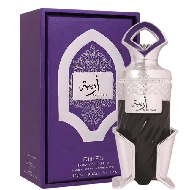Areebah de Riiffs Perfumes – Eau de Parfum Unissex (100ml)Um perfume oriental amadeirado marcante e sofisticado. Notas de frutas tropicais, açafrão e osmanto abrem a fragrância com um toque exótico. No coração, jasmim-manga, patchouli e oud trazem profundidade e elegância. A base cremosa de baunilha de Madagascar, almíscar e cedro garante fixação intensa e presença envolvente. Ideal para noites especiais.