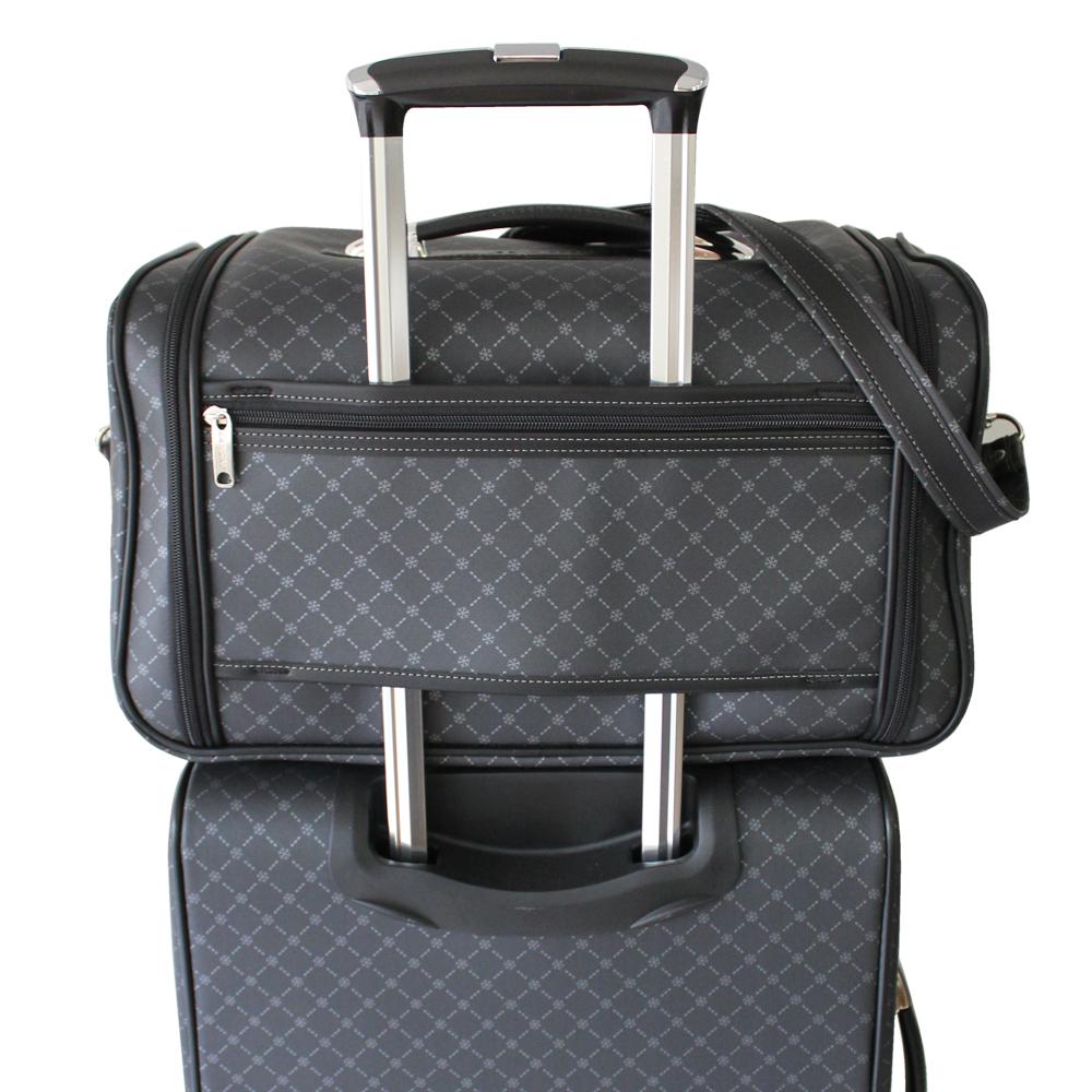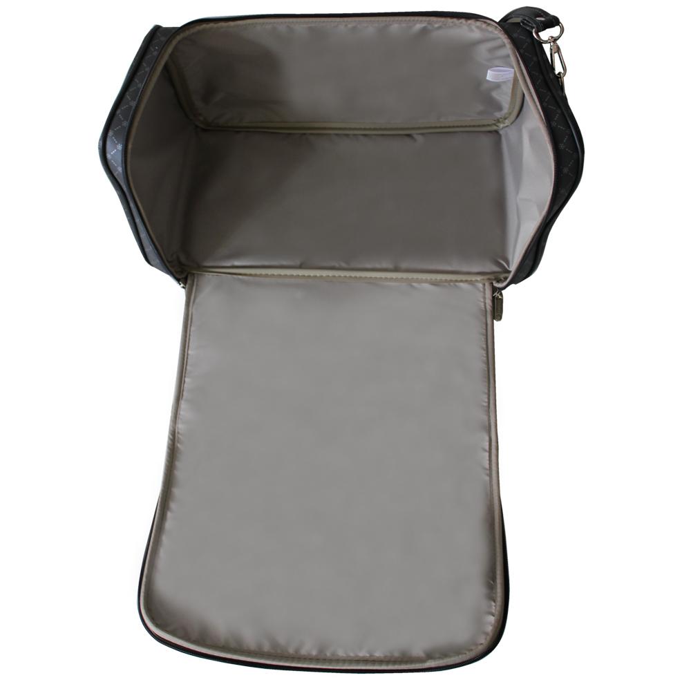 Viaje com mais estilo, praticidade e organização com a Sacola de Viagem Topázio da Lansay. Ideal para levar no carro ou como bagagem de mão no avião, ela se destaca pela abertura em zíper que vai até o fundo, facilitando o acesso até mesmo às peças no fundo da sacola, sem bagunçar o restante.Com design elegante e acabamento refinado, é perfeita para quem busca um acessório versátil e funcional. Possui amplo espaço interno, bolso externo com zíper e encaixe para acoplar no carrinho da mala, além de fundo reforçado com pés de apoio, garantindo durabilidade e estabilidade.Fabricada em vinil resistente com estampa exclusiva, a sacola é fácil de limpar e tem forro 100% poliéster com impermeabilização, ideal para proteger seus pertences durante a viagem. As ferragens são niqueladas, as alças de mão têm toque emborrachado com presilhas metálicas, e a alça tiracolo é ajustável, removível e com ombreira, oferecendo mais conforto no transporte.Combine com a frasqueira e nécessaire da linha Topázio ou com as malas Saint Tropez e Saint Germain para um conjunto elegante e funcional.Destaques Técnicos• Garantia: 2 anos contra defeitos de fabricação• Assistência técnica: com peças originais• Peso: 1,20 kg• Dimensões: 29 (A) x 46 (L) x 25 (P) cm