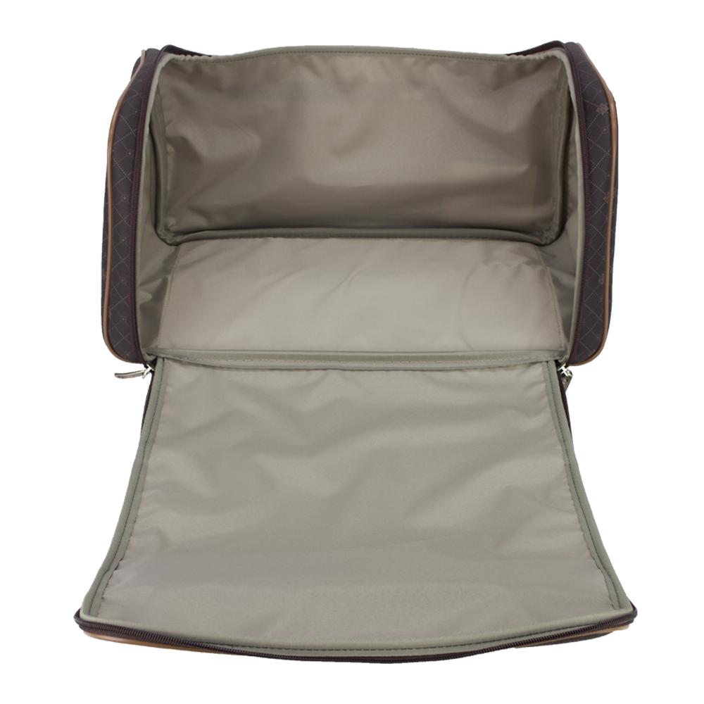 A sacola da Linha Munique é a solução perfeita para quem busca praticidade e organização em viagens de carro ou para levar a bordo no avião. Seu amplo espaço interno, aliado a uma abertura em zíper que vai até o fundo, permite retirar facilmente os itens do fundo sem desorganizar o que está por cima.Pensando no conforto do transporte, pode ser carregada pela alça de mão acolchoada ou pela alça tiracolo destacável com regulagem de altura e ombreira. O bolso externo com fechamento em zíper é ideal para itens que precisam estar sempre à mão. O fundo reforçado com polietileno e os pés de apoio garantem resistência e durabilidade. Além disso, a alça traseira permite acoplar a sacola ao carrinho das malas da Linha Munique, deixando suas mãos livres e facilitando o deslocamento.Feita em vinil com textura e estampa exclusiva, com forro impermeabilizado, a sacola combina estilo, resistência e funcionalidade para suas viagens.Destaques Técnicos• Garantia: 2 anos contra defeitos de fabricação• Assistência técnica: com peças originais• Peso: 1,650 kg• Dimensões: 25 (A) x 44 (L) x 25 (P) cm