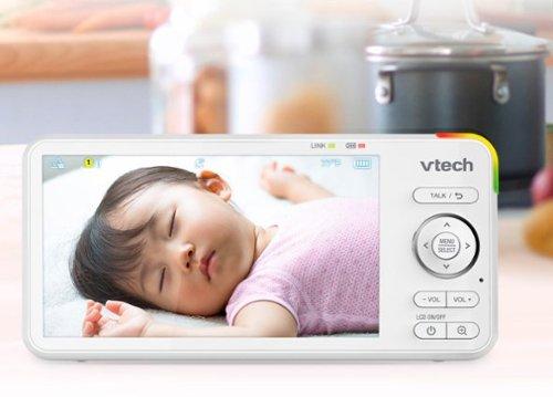 VTech - 2 câmeras 1080p Smart WiFi Acesso remoto Monitor de bebê com vídeo panorâmico e inclinado de 360 graus Tela de 5 ”, luz noturna - branco-RM