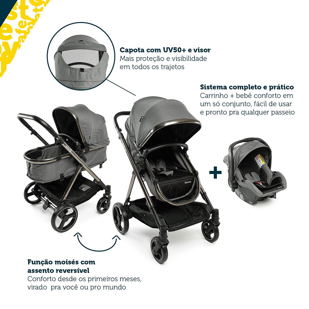 Carrinho com Bebê Conforto Travel System Discover Duo Grey Chrome - Safety 1st