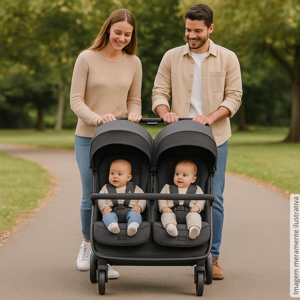 Carrinho de Bebê Para Gêmeos Estrella - JoieO Carrinho Duplo Estrella™ da Joie é sinônimo de conforto, estilo e praticidade para famílias com gêmeos ou irmãos de idades próximas. Com assentos individuais e reclinação total, ele acompanha os bebês desde o nascimento até os 22 kg, oferecendo segurança, suavidade nos passeios e um design moderno que se adapta à rotina dos pais.Características do Produto:• Sistema de freio de um único passo, fácil de acionar e seguro• Arnês SoftTouch de 5 pontos com protetores acolchoados• Ajuste de altura do cinto em 3 níveis, acompanhando o crescimento do bebê• Reclinação total para uso desde recém-nascidos• Múltiplas posições ajustáveis para diferentes momentos do passeio• Descanso de pernas ajustável com suporte acolchoado• Capotas duplas com proteção UV50+ e resistência à água• Suspensão em todas as rodas, garantindo suavidade até em terrenos irregulares• Estrutura leve e de fácil manuseio• Fechamento rápido com uma mão, ideal para o dia a dia• Design compacto quando dobrado, facilitando o transporte e armazenamento• Cesta inferior ampla e acessível, com espaço para bolsas e acessórios• Rodas dianteiras com trava de direção para mais controle• Barra de proteção removível, que facilita a entrada e saída dos bebês• Forros de assento duplos e removíveis para personalização e limpeza fácilEspecificações Técnicas• Uso recomendado: desde o nascimento até 22 kg por assento (aprox. 4 anos)• Tipo: Carrinho duplo lado a lado• Reclinável: múltiplas posições, incluindo reclinação total• Capota: dupla, com proteção solar UV50+ e resistência à água• Cinto de segurança: 5 pontos SoftTouch com ajuste em 3 alturas• Rodas: 4 rodas com suspensão e trava de direção nas dianteiras• Freio: sistema de acionamento único• Dimensões aberto (C x L x A | cm): 87 x 72,5 x 107• Dimensões fechado (C x L x A | cm): 37 x 72,5 x 100• Peso do produto: 13,5 kg• Cesto de armazenamento: amplo e de fácil acesso• Garantia do fornecedor: 24 meses• Imagens meramente ilustrativas.Com o Carrinho Estrella™ Joie, os passeios com gêmeos ficam mais leves, confortáveis e cheios de estilo. Um modelo completo, elegante e funcional que acompanha a família em cada nova descoberta.