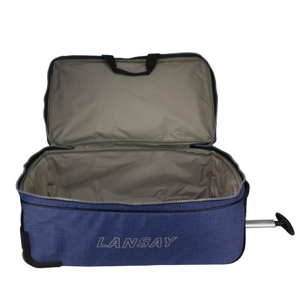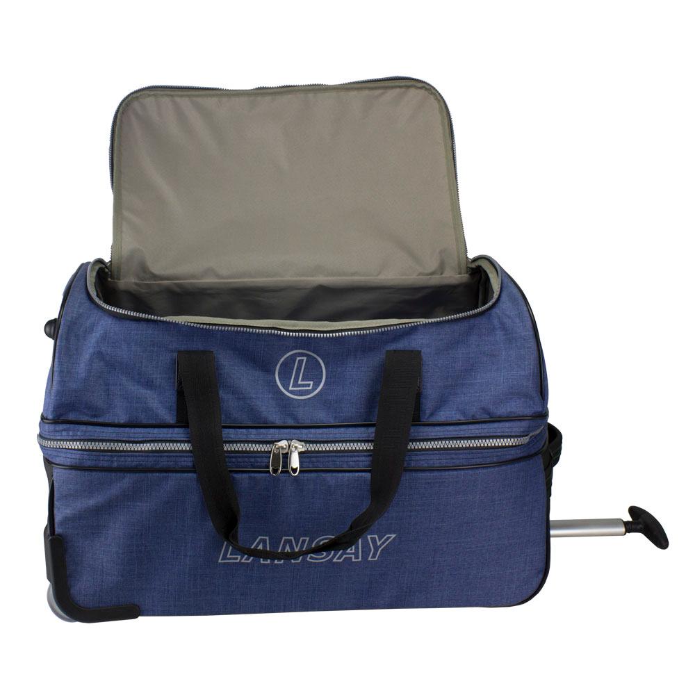 A sacola de viagem SPEED da Linha Trip é confeccionada em poliéster, material leve, resistente e fácil de limpar. O interior é 100% forrado em poliéster com tratamento de impermeabilização. Pode ser transportada pelas alças de mão, superior e lateral, ou pelo sistema de rodas com puxador retrátil embutido na sacola. Seus dois compartimentos independentes a tornam muito prática na hora da arrumação e também na utilização durante a viagem.INFORMAÇÕES TÉCNICASConfeccionada em poliéster100% forrada em poliéster com tratamento de impermeabilizaçãoAmpla aberturaAmplo espaço internoDois compartimentos independentes fechados com zíperAlças de mão em cadarço com pegador acolchoado Alça lateral acolchoadaRodas e puxador retrátil para facilitar o transporteCompartimento inferior reforçado com polietileno rígidoPés de apoio no fundo e na lateral para evitar o contato direto com o pisoGarantia de 2 anos contra defeitos de fabricaçãoAssistência técnica com peças originaisMedidas: 59cm (L) X 39cm (A) X 35cm (P)Peso: 3.150
