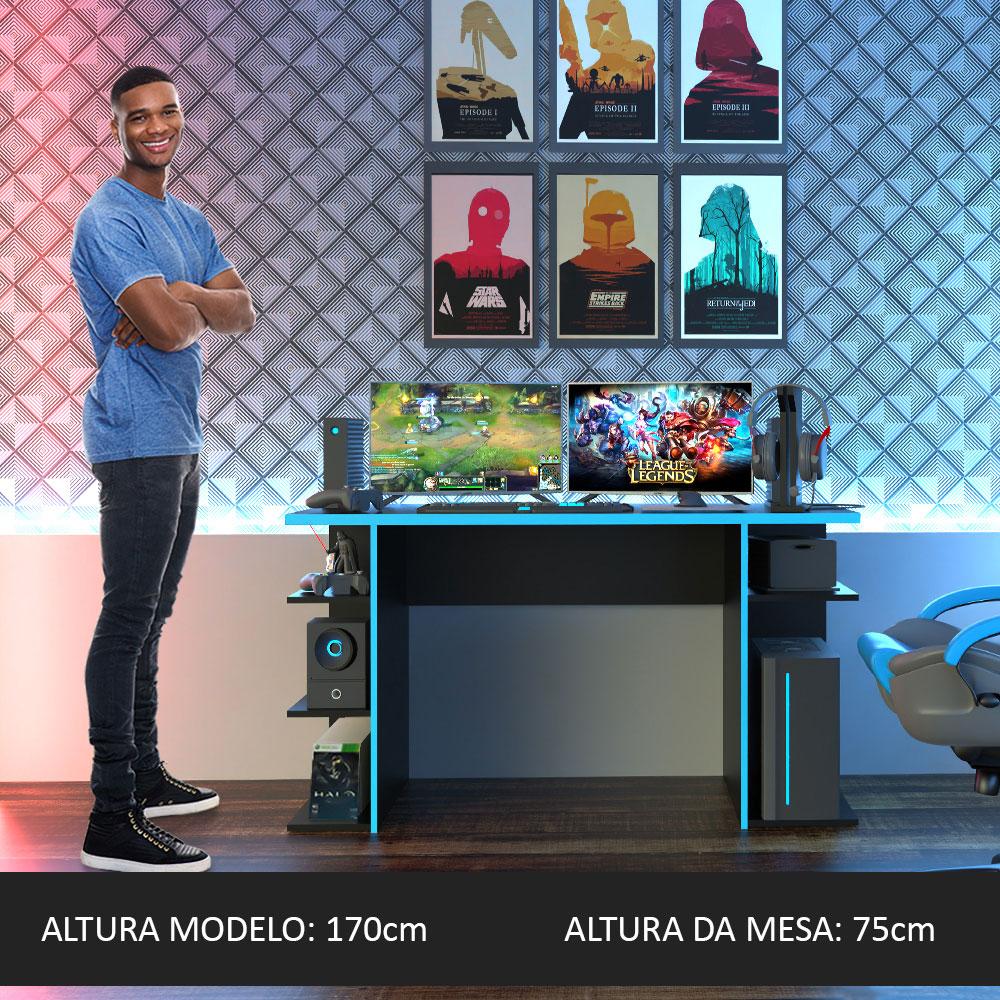 Quem adora jogar, sabe que não há nada melhor do que investir no setup ideal para dar um upgrade na sua experiência de jogo.A Mesa Gamer Madesa Preta proporciona muito conforto e possui um visual super moderno, com detalhes nas bordas. Além disso, possui espaço de sobra!Perfeita para jogar no computador ou no videogame, seu tampo reforçado tem lugar para todos os objetos.Com as prateleiras laterais, você também consegue organizar seus jogos e controles, além de ter um lugar adequado para colocar o CPU ou o console.Para quem trabalha em home office, a Mesa Gamer é um móvel versátil e pode ser utilizado também como escrivaninha ou estação de trabalho.Seu acabamento é feito em pintura poliéster ecológica com 7 camadas de proteção, garantindo mais resistência e durabilidade ao produto.Medidas:- 136 cm de largura- 60 cm de profundidade- 75 cm de alturaItens inclusos:- Uma (1) Mesa Gamer MadesaObs.:- Imagens meramente ilustrativas- A Madesa não disponibiliza serviço de montagem- O produto acompanha ferragens e manual com todos os passos para a instalação da mesa1 – O produto é novo ou usado?R.: Todos os produtos da Madesa são novos, enviados da nossa fábrica diretamente para as casas de nossos clientes.2 – O produto vem montado? Se não, vocês realizam a montagem?R.: A Madesa não disponibiliza serviço de montagem. Todos os produtos seguem com manual de instalação e as ferragens necessárias. Alguns produtos possuem vídeo explicando o passo a passo da montagem.3 – Vocês possuem loja física? Posso retirar meu produto em mãos?R.: Não possuímos loja física, apenas loja virtual. Confira as opções de envio ao colocar o seu CEP.4 – Qual é o valor do envio? Posso pagar separadamente?R.: O valor do envio é calculado com base no peso e volume do produto, e no CEP de destino. Você pode calcular o valor e prazo de entrega no simulador.5 – A Madesa entrega em todo Brasil? Como é feita a entrega?R.: Sim, entregamos no Brasil inteiro através de transportadoras parceiras.6 – O produto acompanha Nota Fiscal?R.: Sim, todos os produtos são entregues com suas respectivas notas fiscais.7 – Os produtos possuem garantia?R.: Sim. A Madesa oferece 3 meses de garantia para defeitos de fabricação.A Madesa se dedica à sustentabilidade com várias iniciativas: temos uma usina própria para gerar energia que abastece uma de nossas fábricas. Selecionamos nossos fornecedores, priorizando aqueles que possuem um compromisso com a sustentabilidade e proteção do meio ambiente. Todo o plástico utilizado no setor produtivo é proveniente de reciclagem e as suas sobras são encaminhadas ao fornecedor que os recicla. Também investimos no desenvolvimento contínuo de nossos colaboradores e em ações educacionais que beneficiem a comunidade.