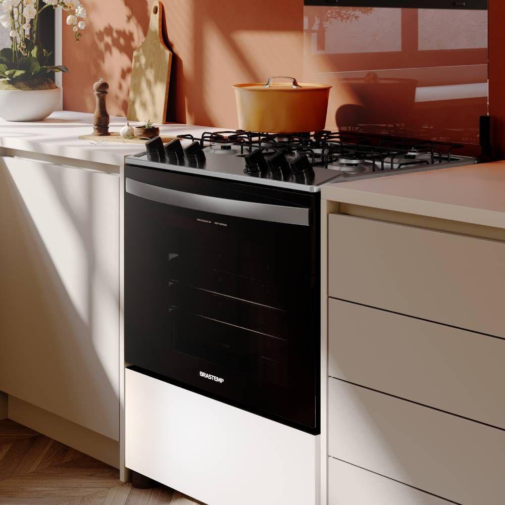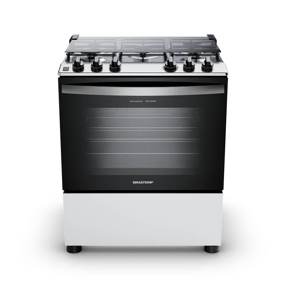 Fogão Brastemp Piso 5 Bocas Branco com Botões Removíveis e Aro Protetor Bivolt