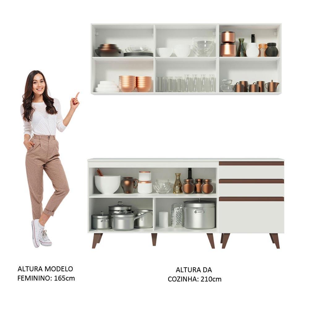 Uma cozinha moderna e bem aconchegante precisa de um móvel diferenciado como a Cozinha Reims, desenvolvida levando em conta as ultimas tendências mundiais em cozinhas.É uma cozinha com tamanho ideal e muito espaçosa internamente. Bem distribuída: possui 3 gavetas grandes com corrediças metálicas e 5 portas para organização e a melhor distribuição de louça, panela, utensílios e demais objetos. Os puxadores são embutidos em alumínio na coloração marrom.Sua profundidade é de cozinha planejada: 52 cm nos balcões inferiores e 31 cm nos aéreos. O tampo acompanha o balcão de pia e pode ser removido para a colocação de pia. Para completar, os pés retro são um charme a parte que além de beleza, conferem firmeza e resistência ao móvel.Disponível em duas versões super modernas: toda branca e preta com o interno branco. O acabamento é em Pintura Poliéster de alta resistência, que dá maior destaque à coloração e conserva a beleza do móvel por mais tempo.As medidas totais são: 180 cm de largura e 83 cm de altura o balcão inferior e 66 cm de altura os aéreos. A altura final pode ser definida pelo cliente na hora da instalação, colocando o aéreo na altura que desejar. Na imagem sugerimos a altura padrão: 210 cm.Itens inclusos:- Um (1) balcão inferior de 120 cm com duas (2) portas e tampo- Um (1) balcão inferior de 60 cm com três (3) gavetas e tampo- Um (1) aéreo de 120 cm com duas (2) portas- Um (1) aéreo de 60 cm com uma (1) porta(Imagens meramente ilustrativas: os eletros e as decorações não acompanham o produto.)Código do produto: G200806E09Obs.: A Madesa não disponibiliza serviço de montagem.1-O produto é novo ou usado?R.: Todos os produtos da Madesa são novos, enviados da nossa fábrica diretamente para as casas de nossos clientes.2-O produto vem montado? Se não, vocês realizam a montagem?R.: A Madesa não disponibiliza serviço de montagem. Todos os produtos seguem com manual de instalação e as ferragens necessárias. Alguns produtos possuem vídeo explicando o passo a passo da montagem.3-Vocês possuem loja física? Posso retirar meu produto em mãos?R.: Não possuímos loja física, apenas loja virtual. Confira as opções de envio ao colocar o seu CEP.4-Qual é o valor do envio? Posso pagar separadamente?R.: O valor do envio é calculado com base no peso e volume do produto, e no CEP de destino. Você pode calcular o valor e prazo de entrega no simulador.5-A Madesa entrega em todo Brasil? Como é feita a entrega?R.: Sim, entregamos no Brasil inteiro através de transportadoras parceiras.6-O produto acompanha Nota Fiscal?R.: Sim, todos os produtos são entregues com suas respectivas notas fiscais.7-Os produtos possuem garantia?R.: Sim. A Madesa oferece 3 meses de garantia para defeitos de fabricação.A Madesa se dedica à sustentabilidade com várias iniciativas: temos uma usina própria para gerar energia que abastece uma de nossas fábricas. Selecionamos nossos fornecedores, priorizando aqueles que possuem um compromisso com a sustentabilidade e proteção do meio ambiente. Todo o plástico utilizado no setor produtivo é proveniente de reciclagem e as suas sobras são encaminhadas ao fornecedor que os recicla. Também investimos no desenvolvimento contínuo de nossos colaboradores e em ações educacionais que beneficiem a comunidade.