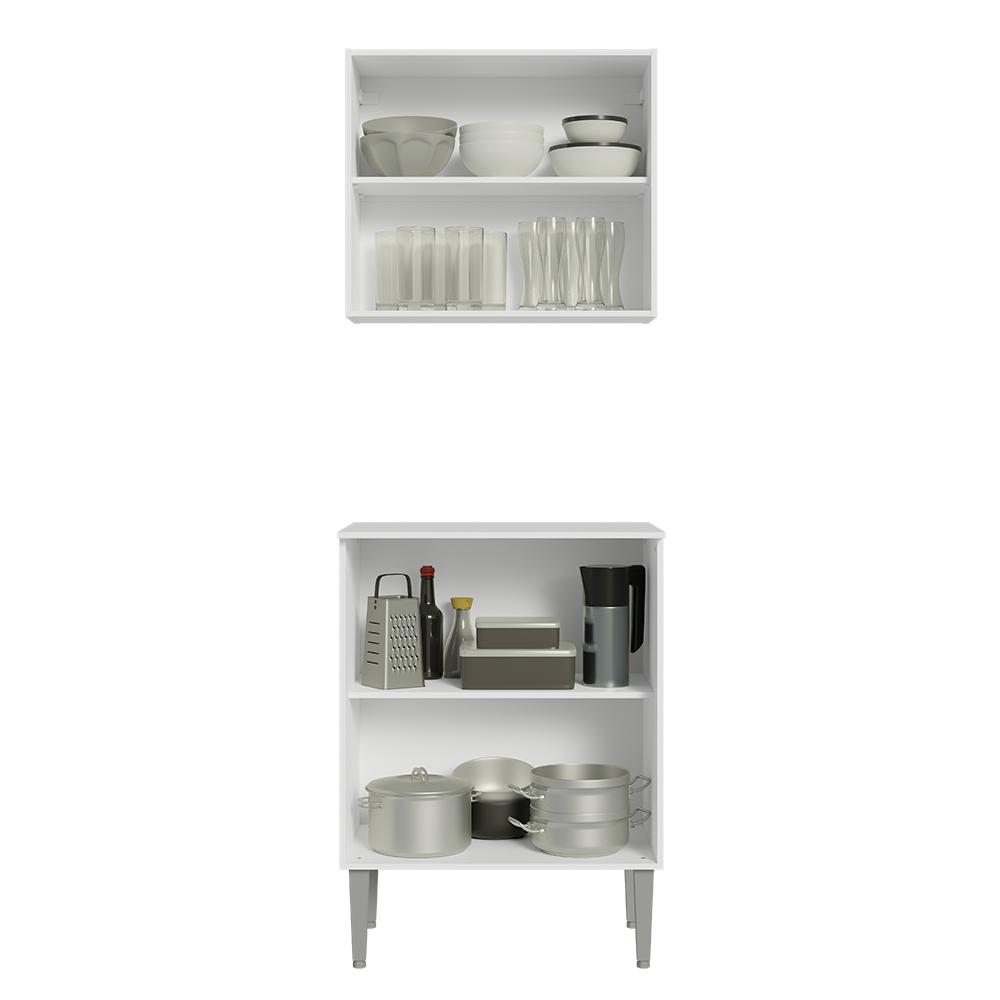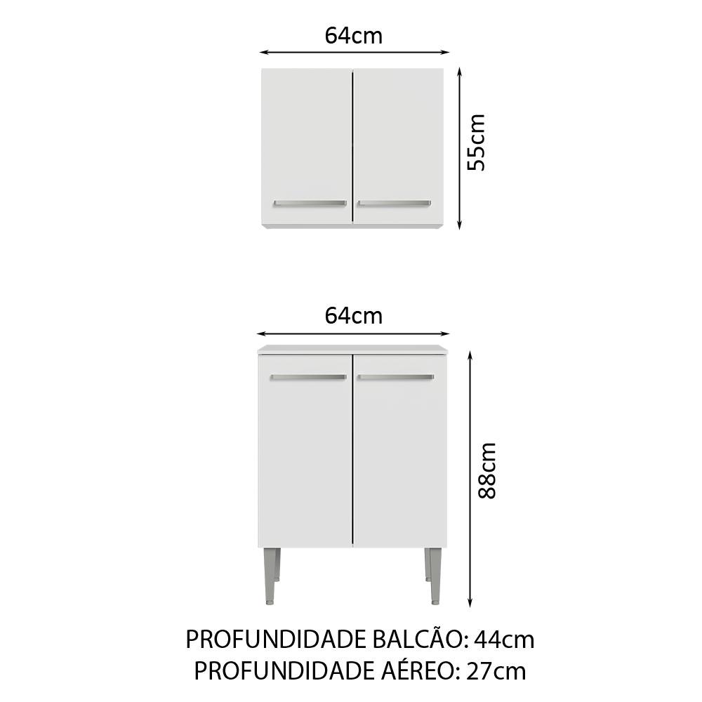 Kit com Armário Aéreo e Balcão 64cm Branco Emilly Madesa