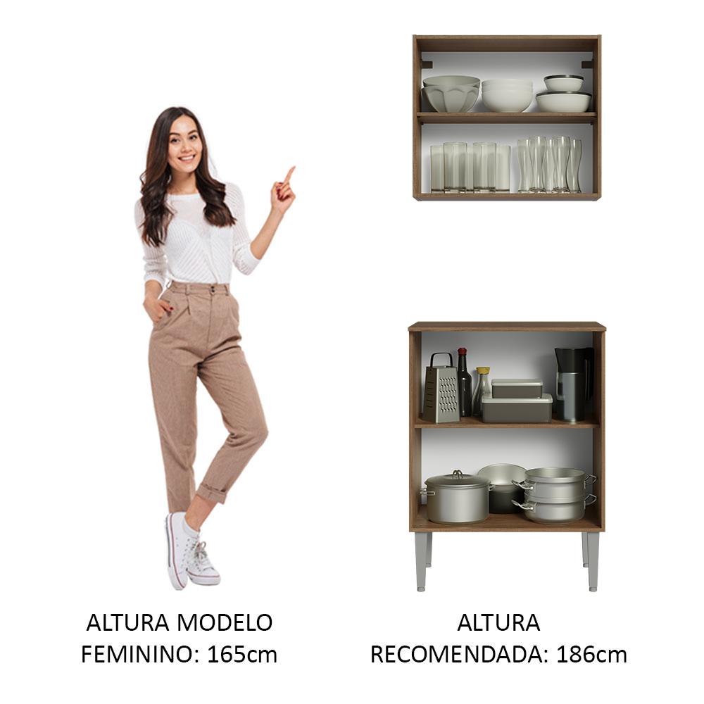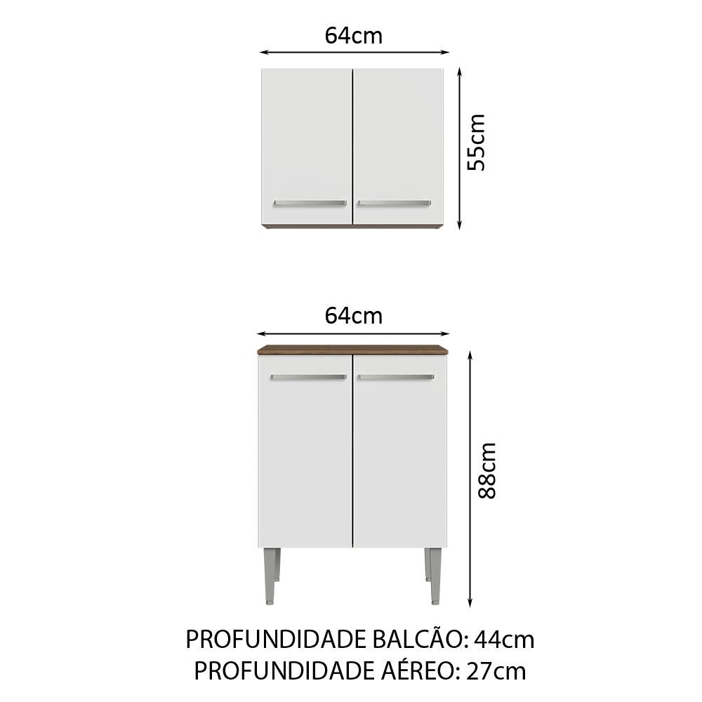 Kit com Armário Aéreo e Balcão 64cm Rustic/Branco Emilly Madesa