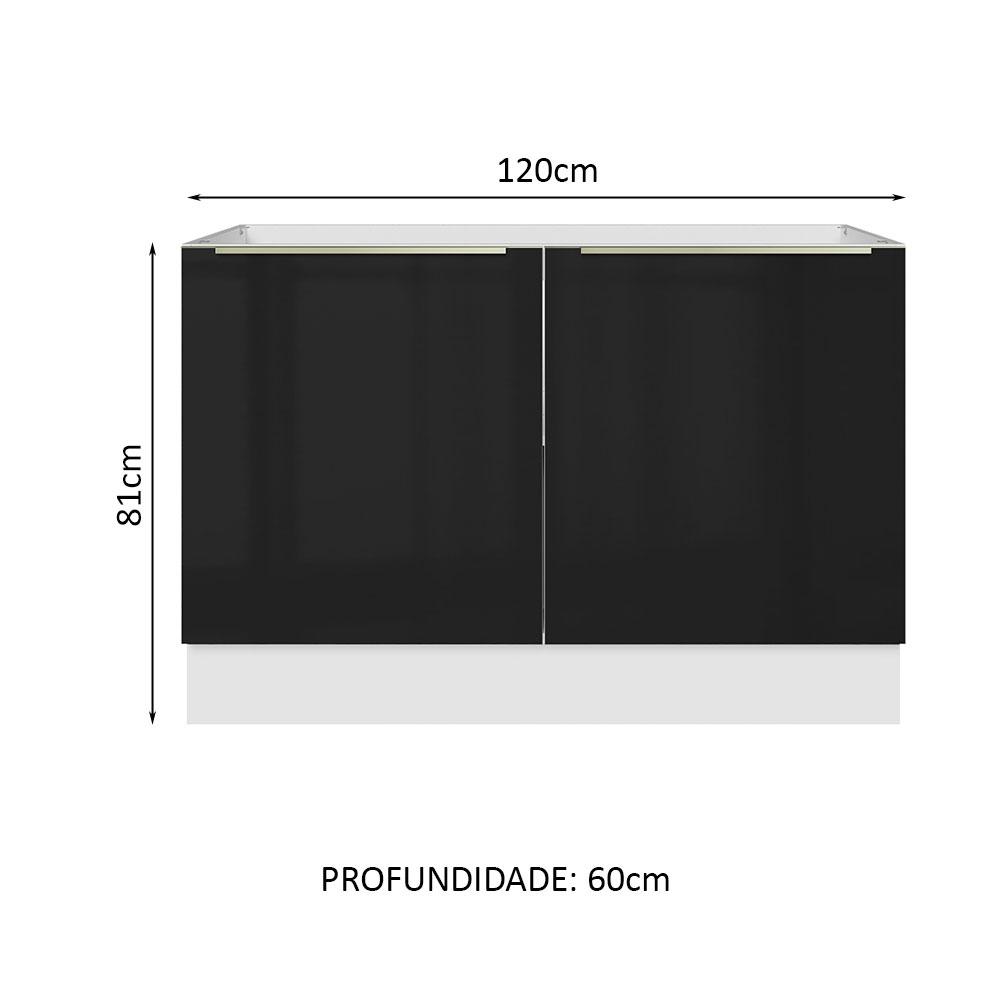 Balcão de Pia Madesa Lux 120 cm 2 Portas - Branco/Preto