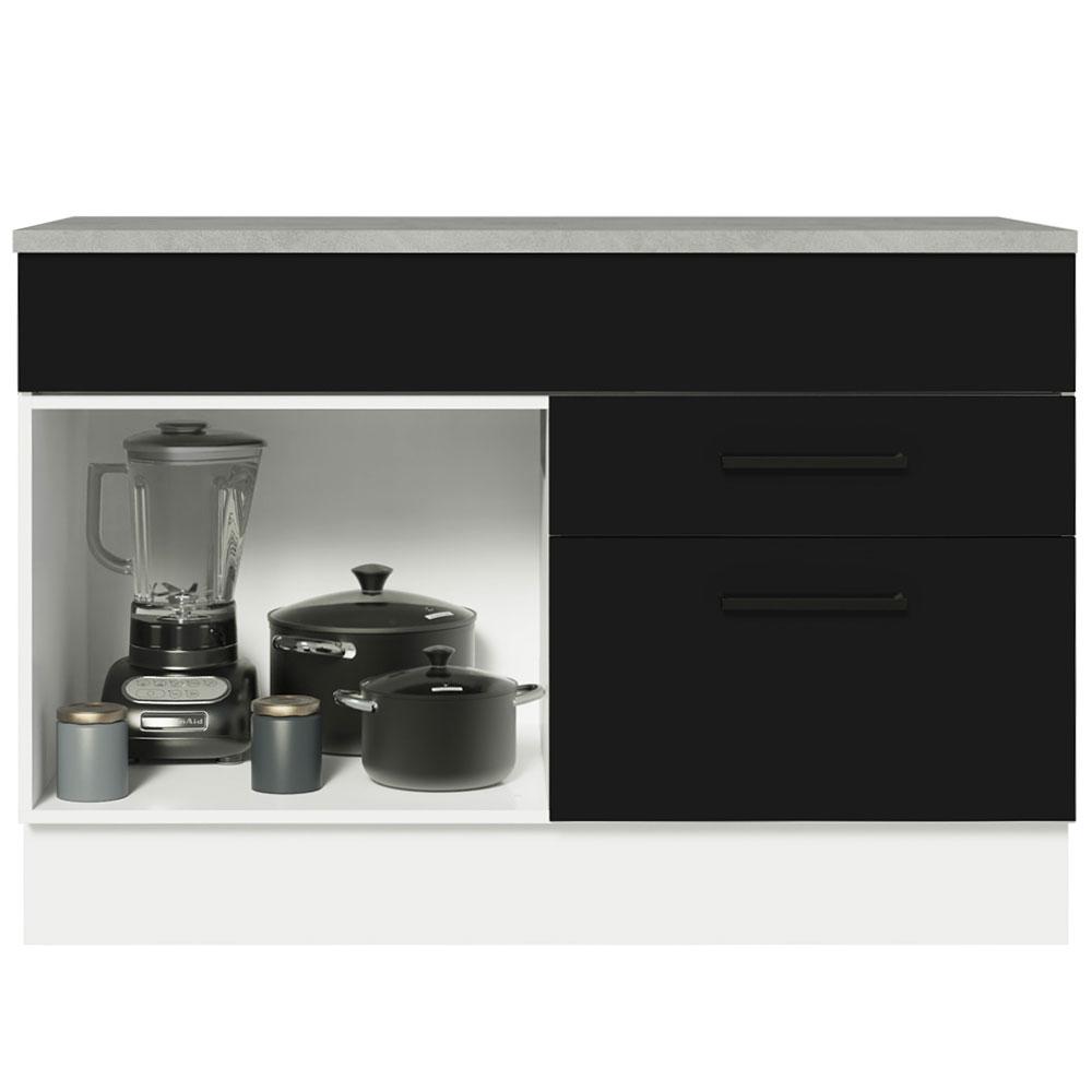 Balcão Gabinete de Pia Cozinha 120 x 60 cm 1 Porta 2 Gavetas Branco/Preto (Com Tampo) Agata Madesa