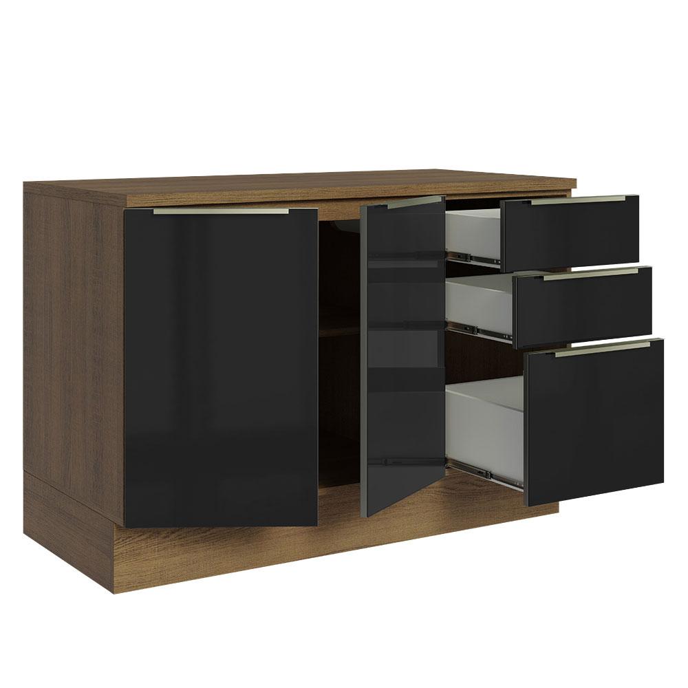 Balcão de Pia 120 cm 2 Portas 3 Gavetas Rustic/Preto Lux Madesa