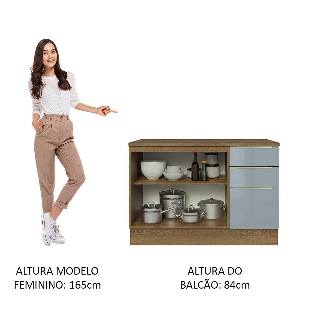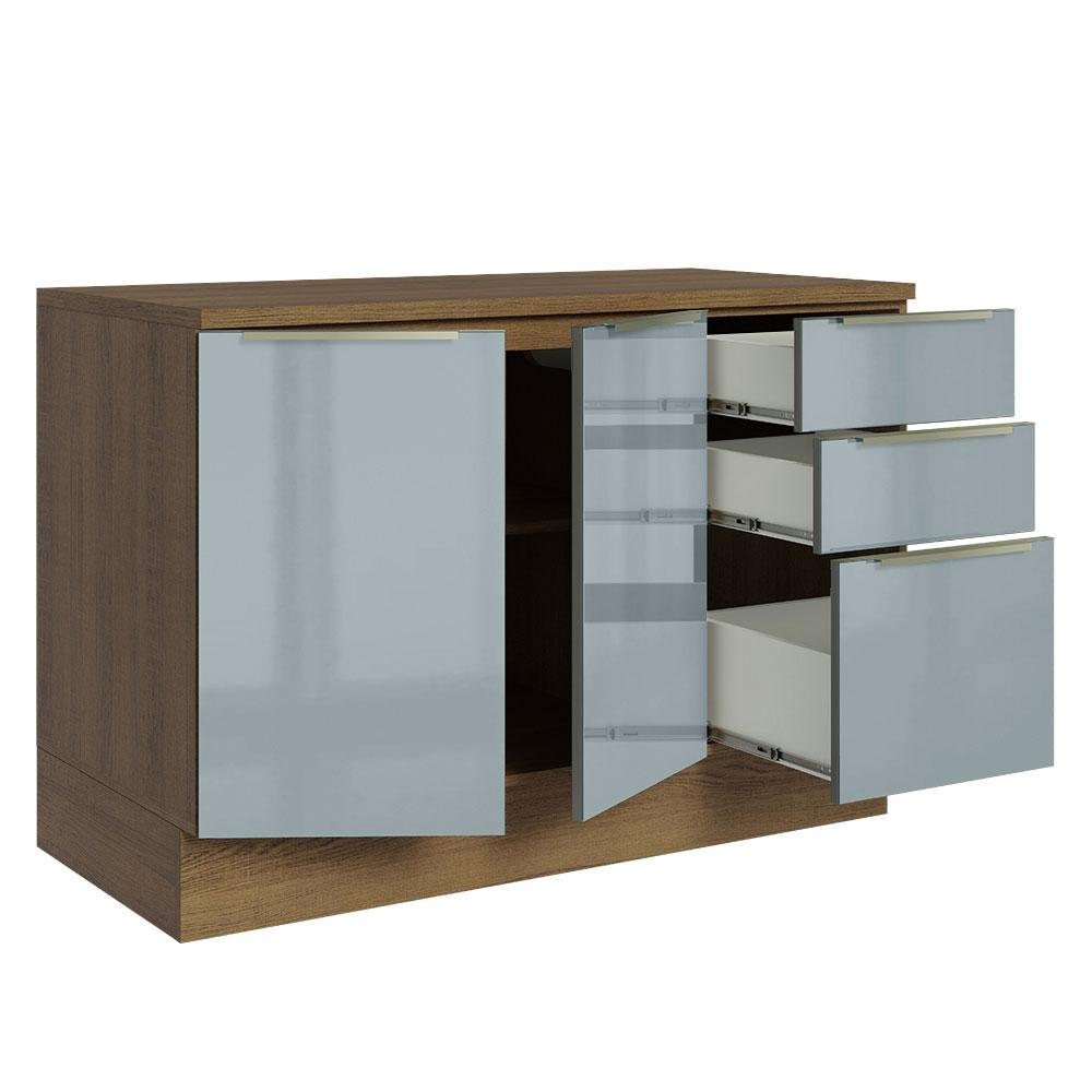 Balcão de Pia 120 cm 2 Portas 3 Gavetas - Rustic/Cinza Lux Madesa