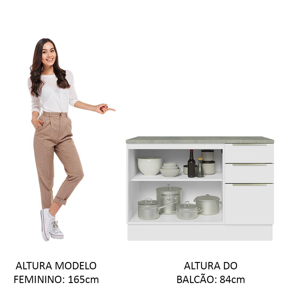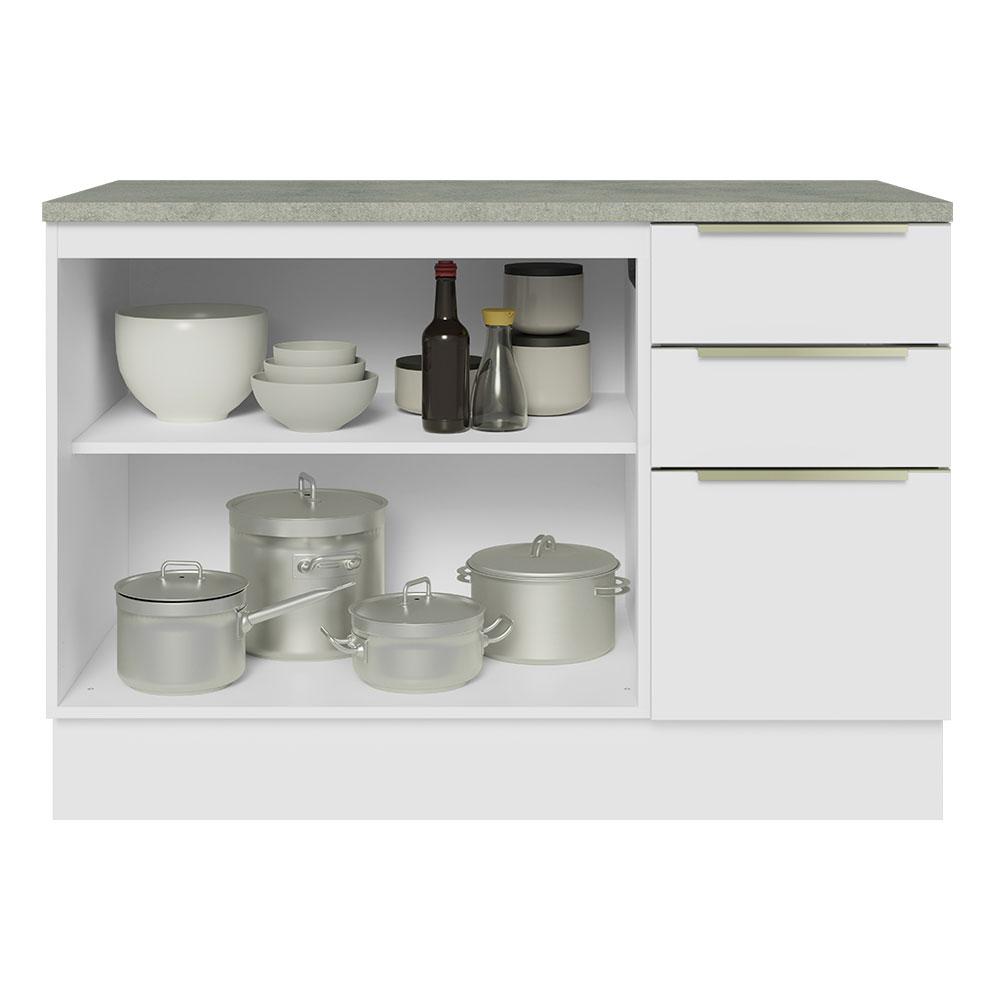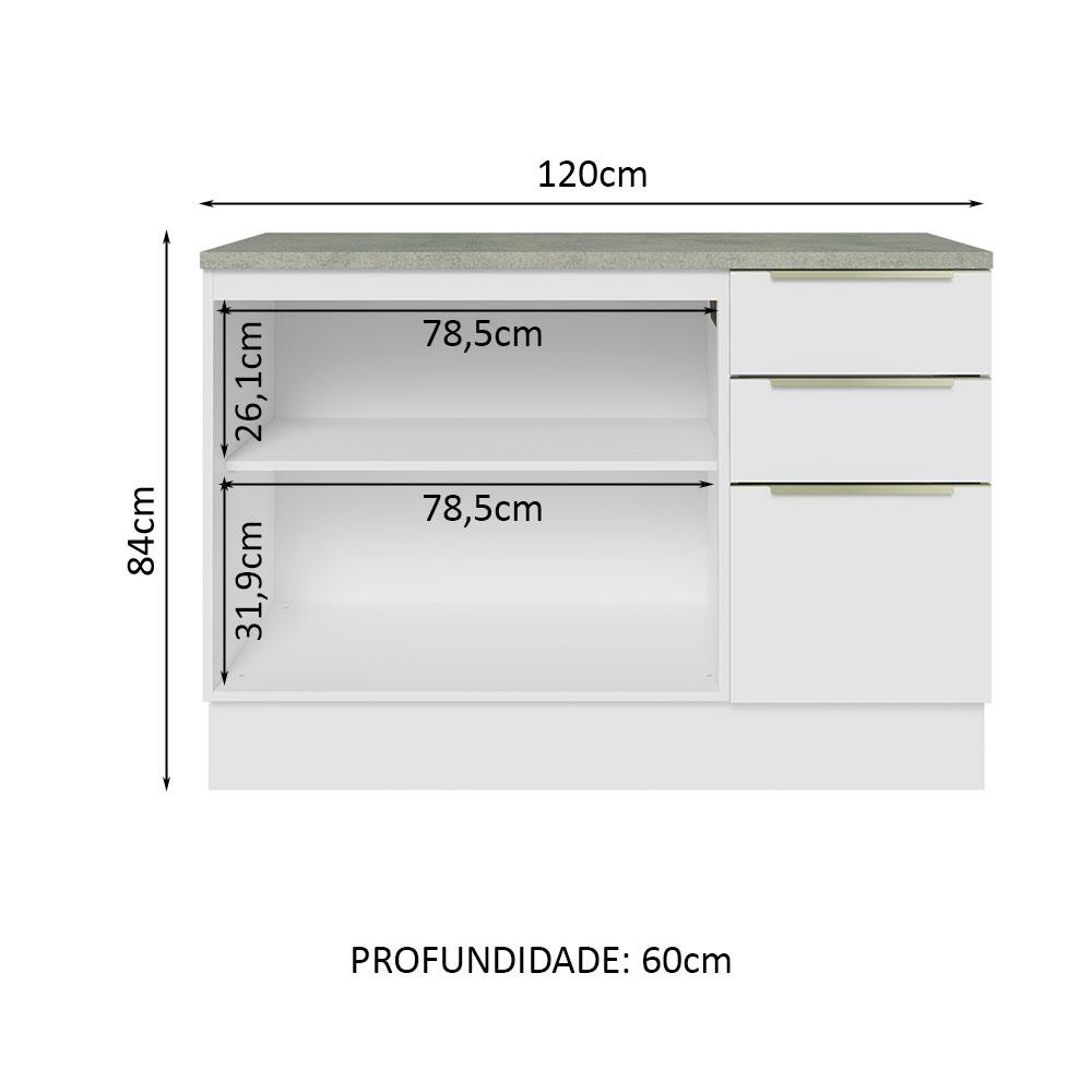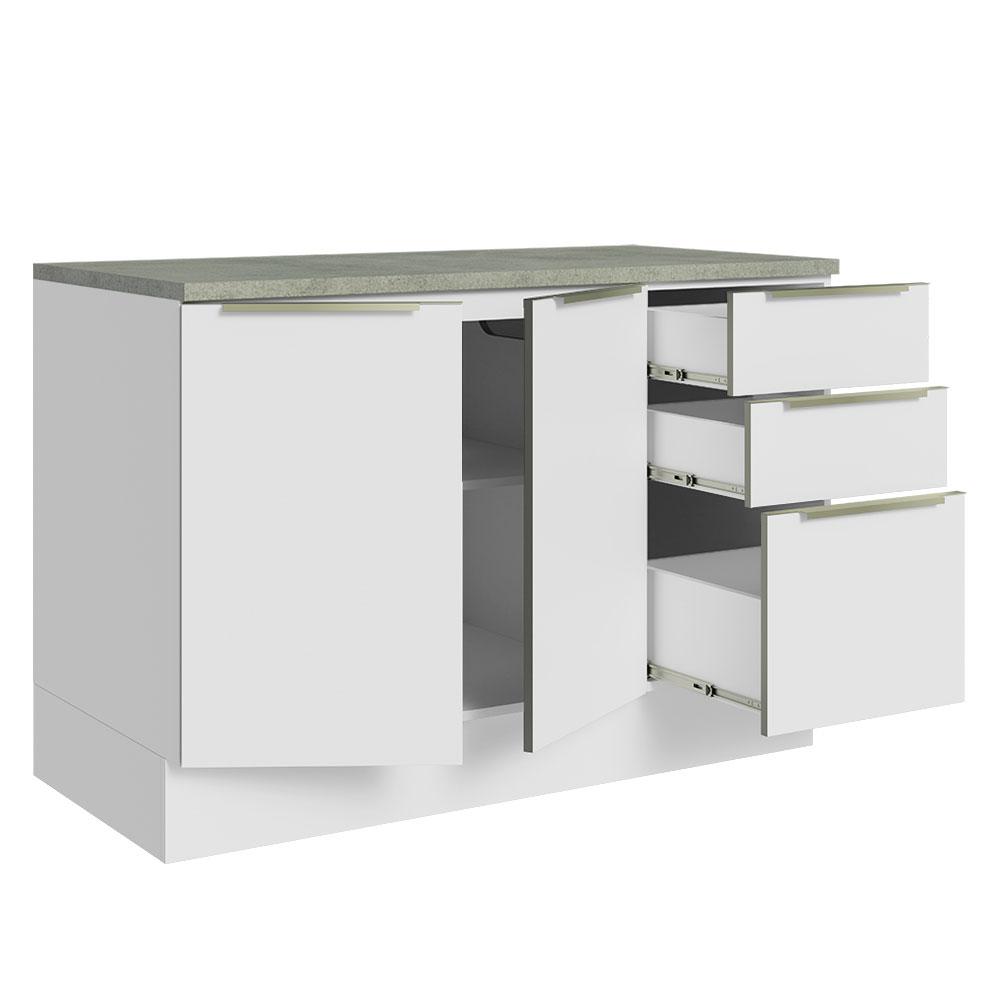 Balcão de Pia 120 cm 2 Portas 3 Gavetas Branco/Branco Veludo Lux Madesa
