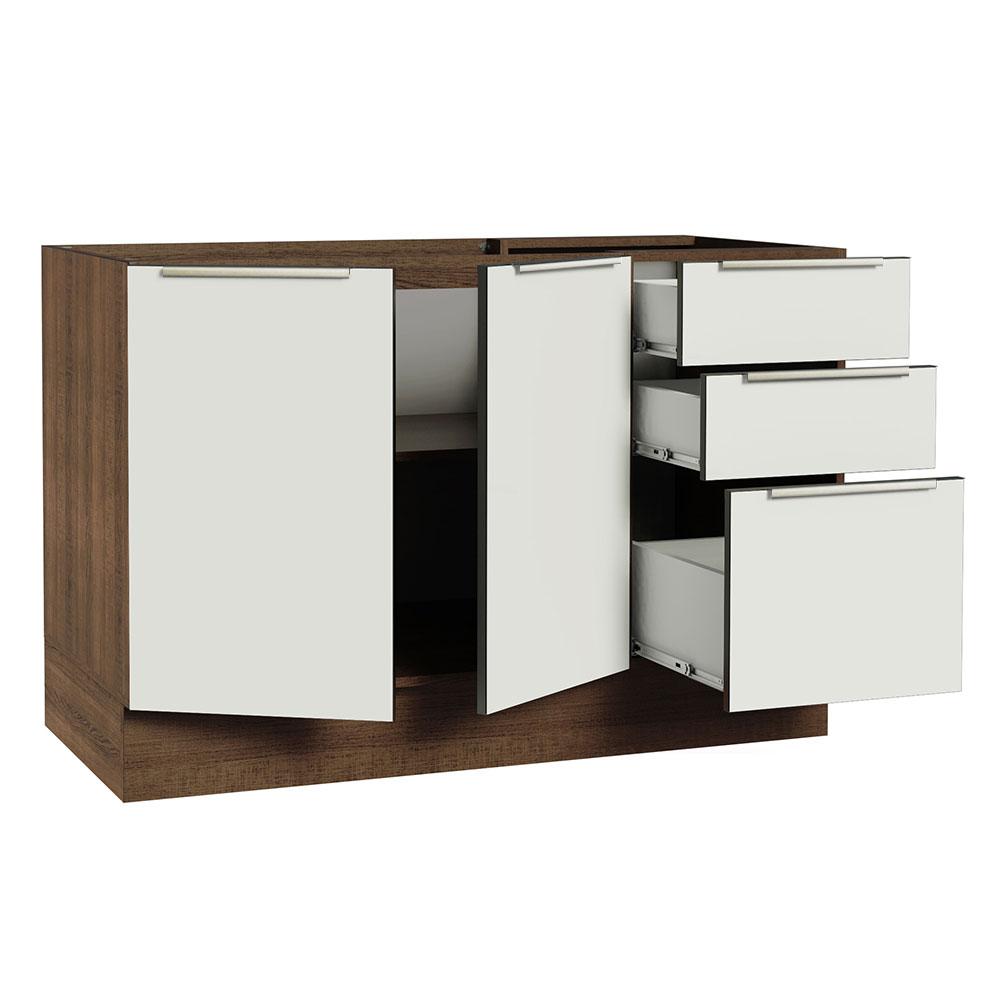 Balcão Gabinete de Pia Madesa Lux 120 cm 2 Portas 3 Gavetas (Sem Tampo) - Rustic/Branco Veludo