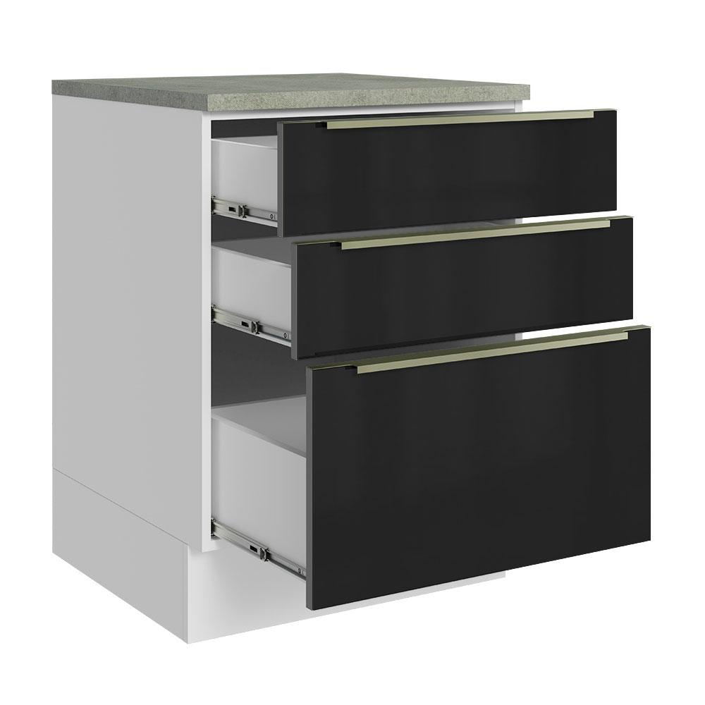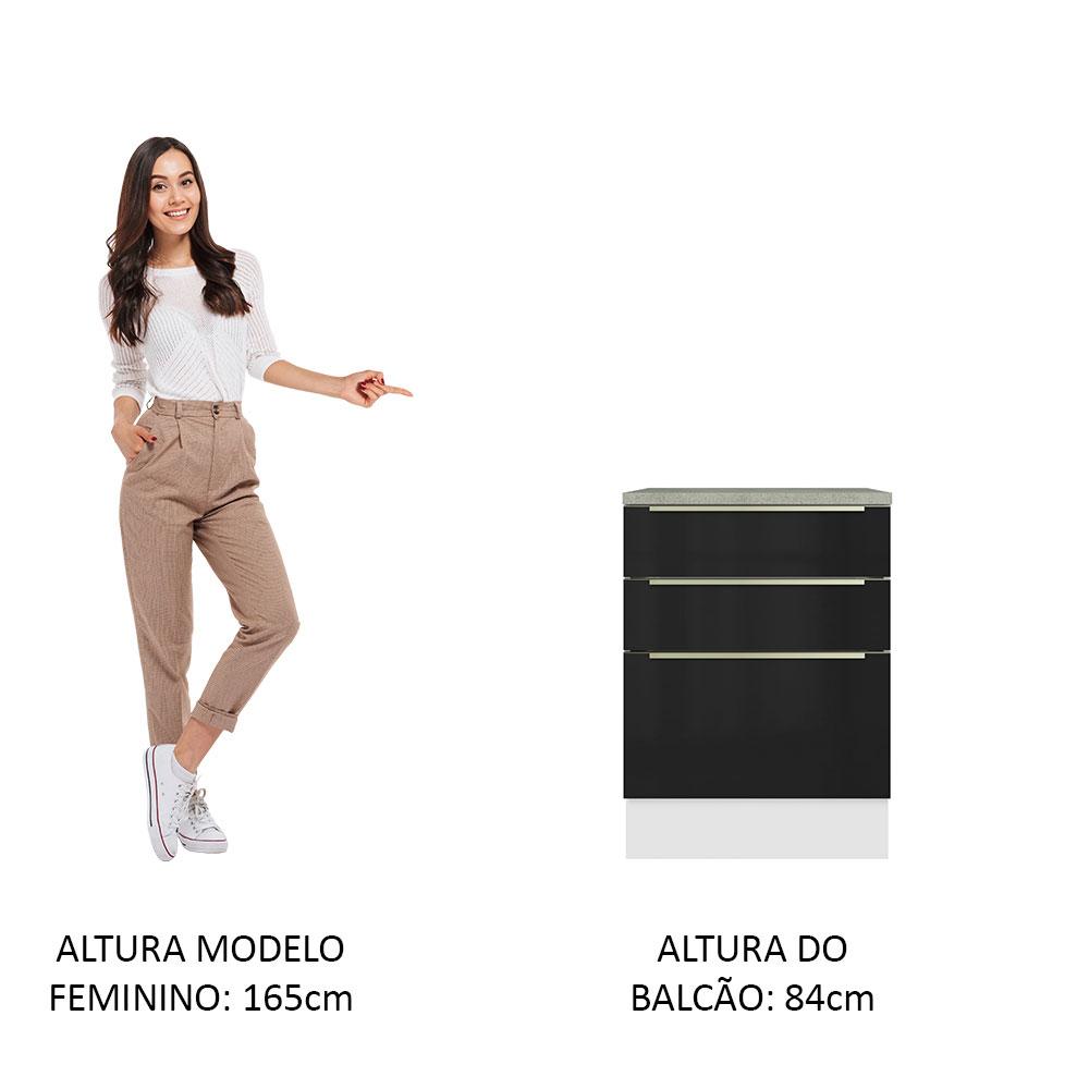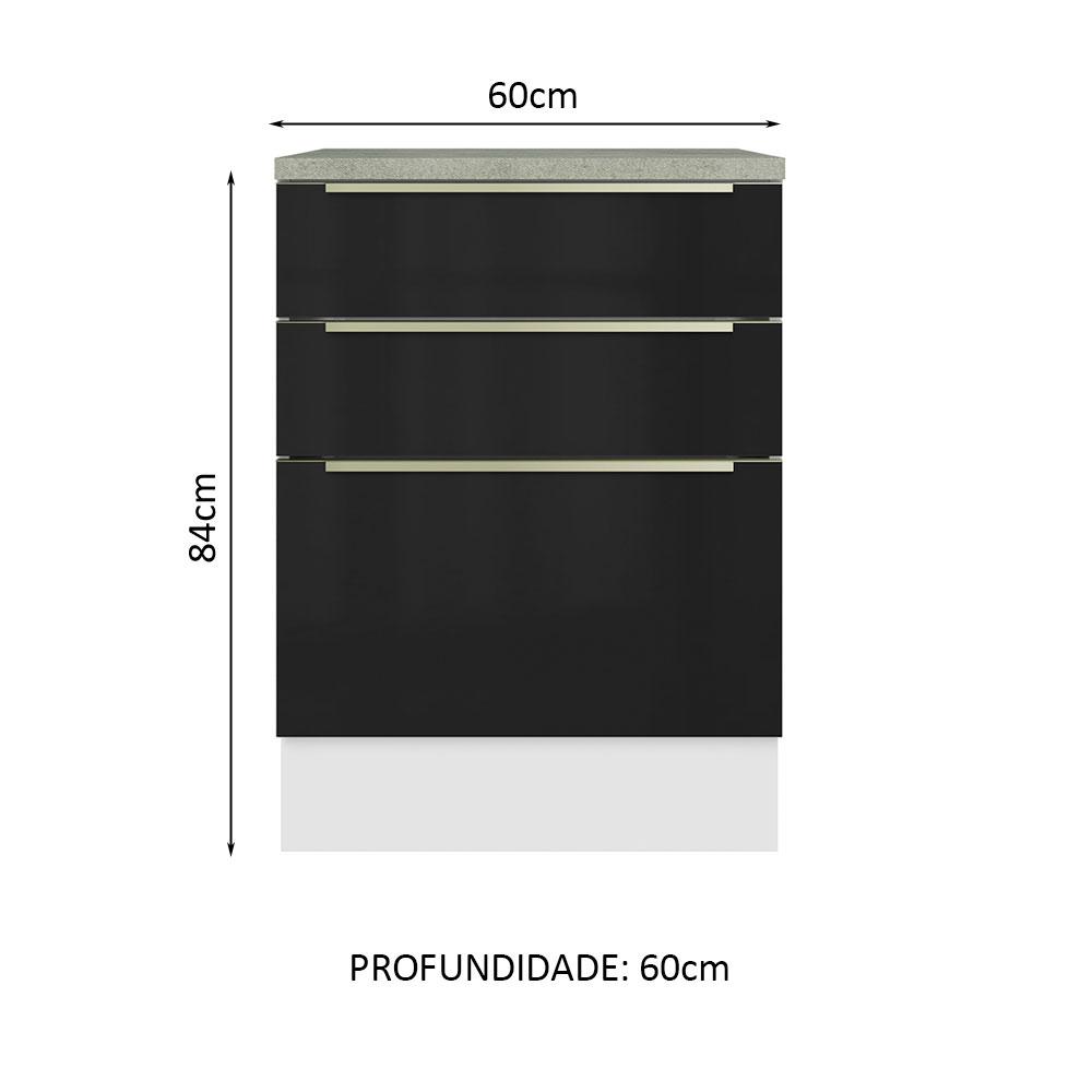 Balcão 60 cm 3 Gavetas Branco/Preto Lux Madesa