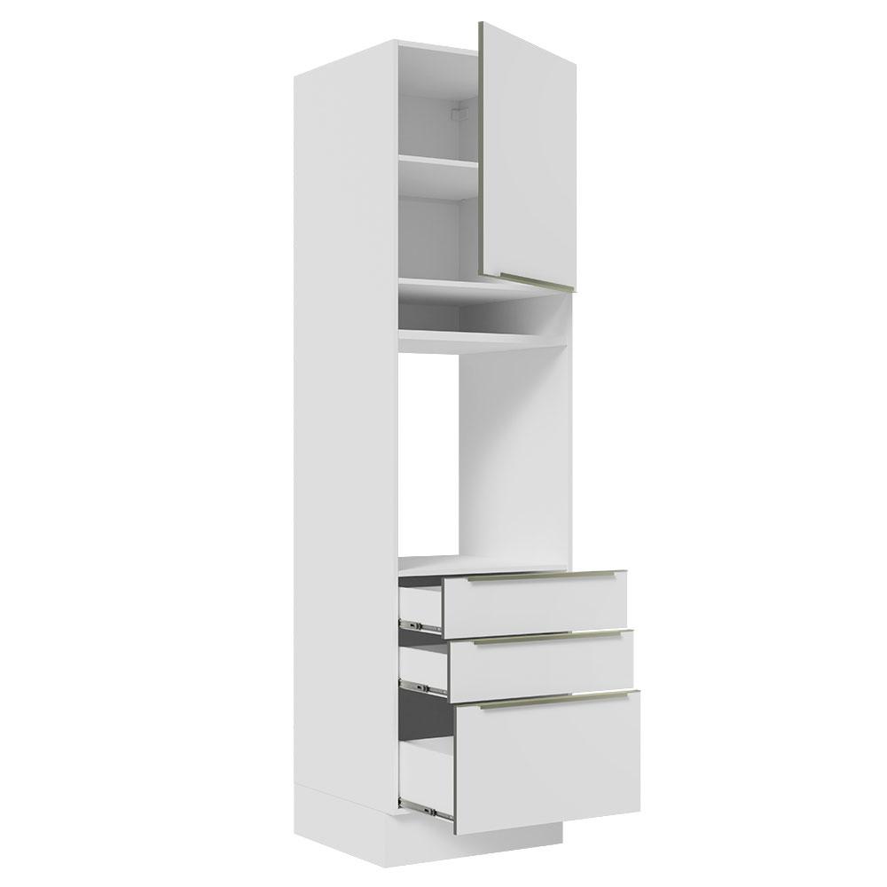 Torre Quente Madesa Lux 60 cm 1 Porta 3 Gavetas - Branco/Branco Veludo