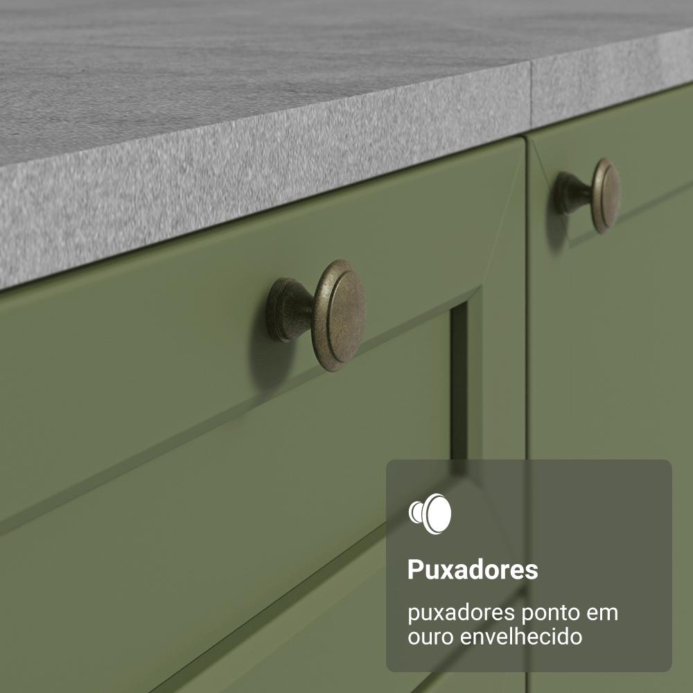 O Balcão Gabinete de Pia Vik da Madesa une funcionalidade e um design que navega entre o clássico e o contemporâneo.O acabamento de alta resistência da estrutura é em branco e das portas em Verde. Possui uma textura suave ao toque, trazendo leveza e sofisticação ao ambiente. O destaque fica por conta dos puxadores ponto em ouro envelhecido, feitos com metal resistente, trazem personalidade e um charme único. Outro diferencial está no detalhe chanfrado das frentes, que forma molduras elegantes e dá profundidade, refletindo o estilo americano com um toque moderno.Além de trazer elegância, a linha Vik é funcional em cada detalhe. As portas possuem dobradiças com amortecimento, garantindo um fechamento suave e silencioso, enquanto as gavetas permitem abertura total, para você organizar tudo que precisa com muito mais facilidade. Ideal para quem busca elegância, qualidade e funcionalidade para o dia a dia.Importante: este balcão é vendido sem tampo, perfeito para quem deseja personalizar o acabamento conforme seu projeto.>Medidas totais:- 81 cm de altura- 120 cm de largura- 52 cm de profundidadeItens inclusos:- Um (1) Balcão com duas (2) portas (Não acompanha o tampo)Código do produto: G24120L9VKObs.:- Imagens meramente ilustrativas, a decoração não acompanha o produto- A Madesa não disponibiliza serviço de montagem- O produto segue com manual de instalação e todas as ferragens necessárias para sua montagemA Madesa se dedica à sustentabilidade com várias iniciativas: temos uma usina própria que gera energia e abastece uma de nossas fábricas. Priorizamos fornecedores que possuem um compromisso com o meio ambiente. Todo o plástico utilizado no setor produtivo é proveniente de reciclagem e as suas sobras são encaminhadas ao fornecedor que os recicla. Também investimos no desenvolvimento contínuo de nossos colaboradores e em ações educacionais que beneficiem a comunidade.
