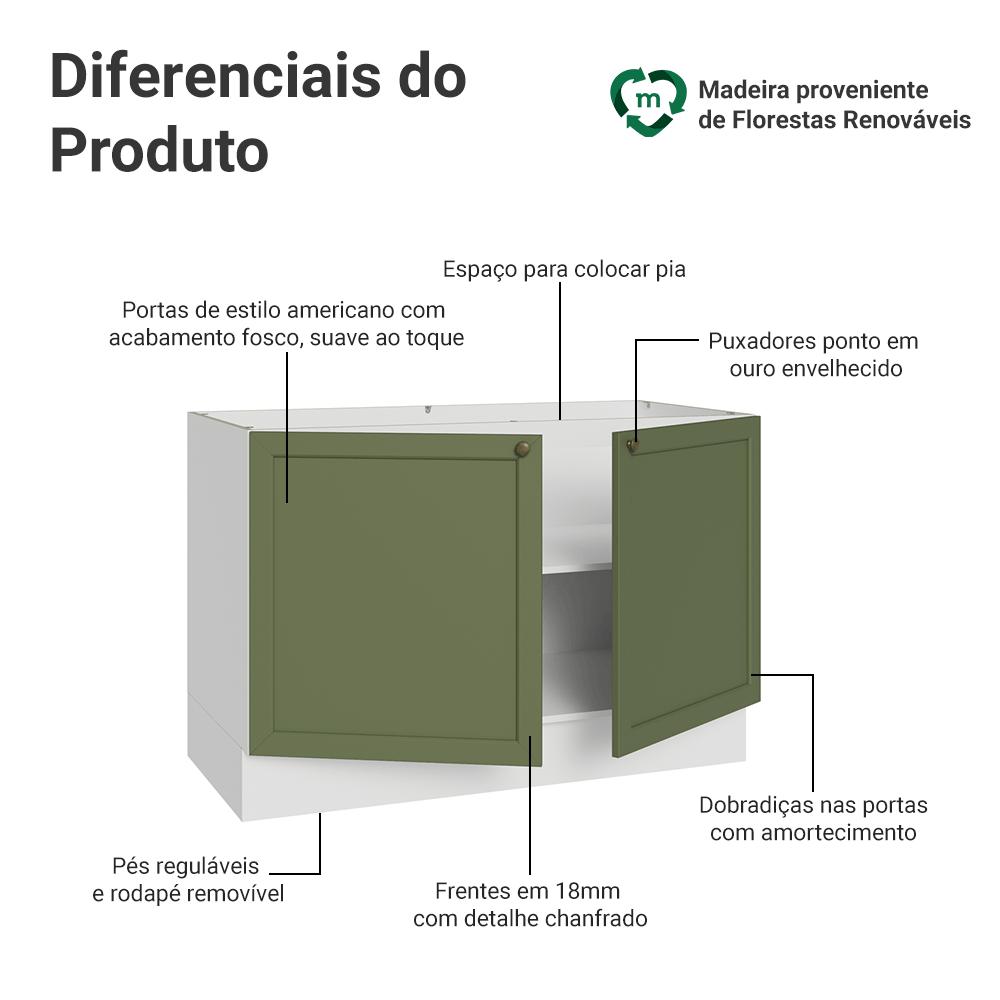 Balcão Gabinete de Pia 120 cm (Sem Tampo) Branco/Verde Vik Madesa