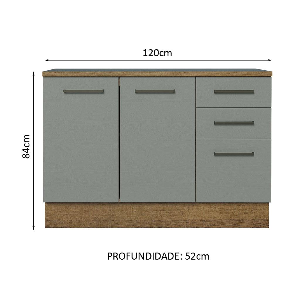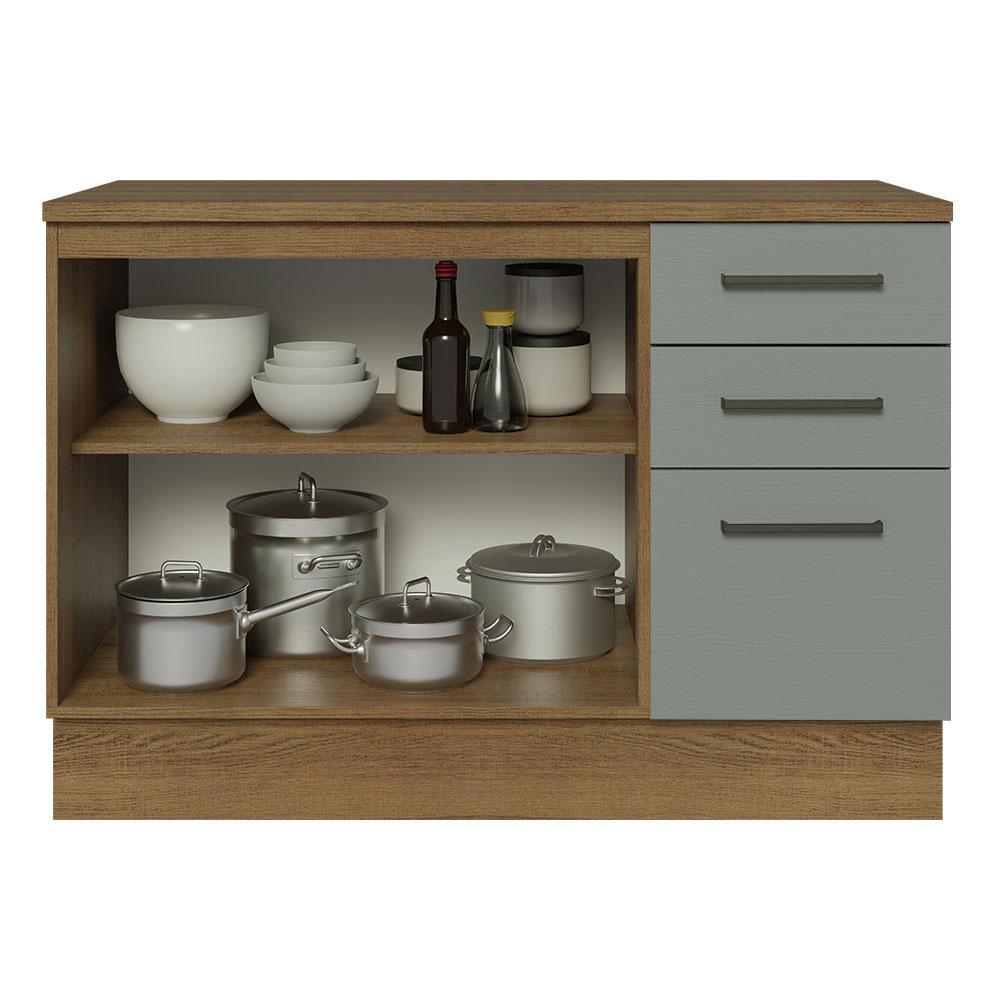 Balcão de Pia Armário de Cozinha 2 Portas e 3 Gavetas (Com Tampo) Rustic Agata Madesa