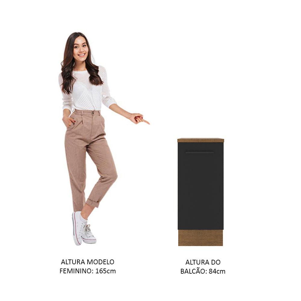 Balcão Armário de Cozinha 35 cm 1 Porta Rustic/Preto Agata Madesa