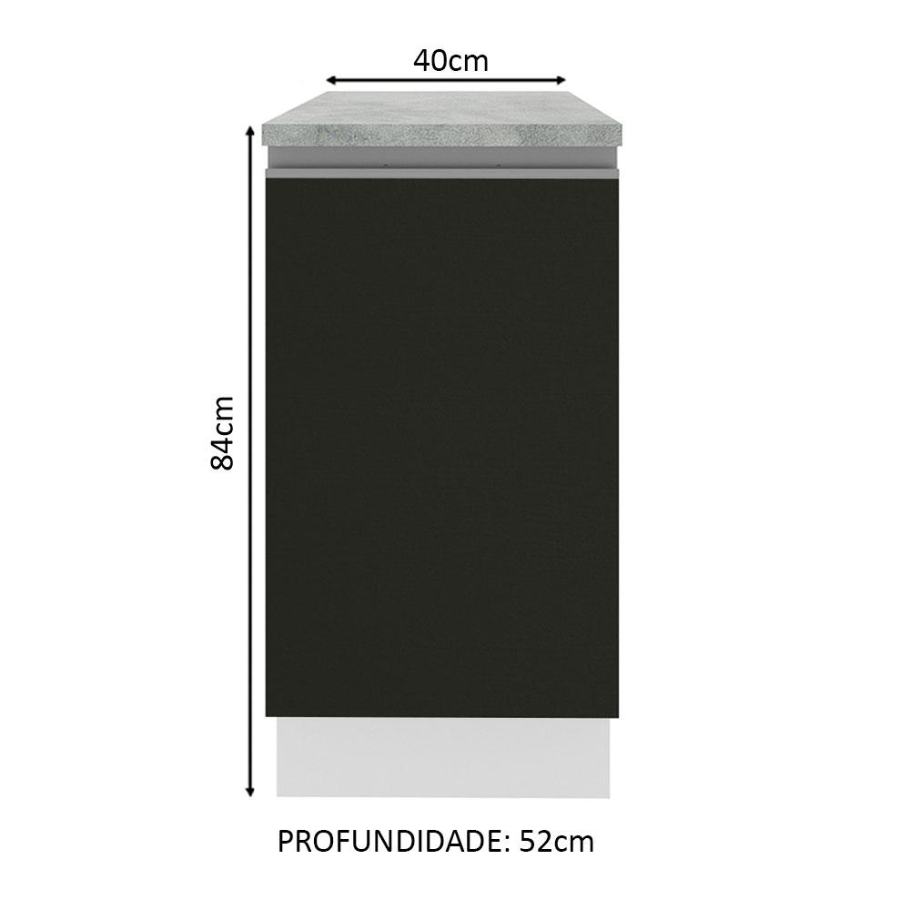 Balcão Armário de Cozinha 40 cm 1 Porta Branco/Preto Glamy Madesa