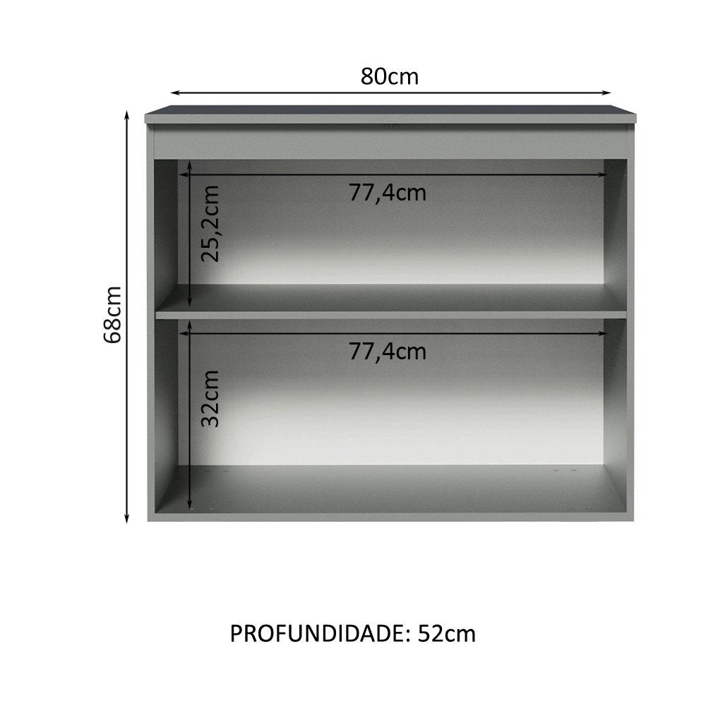 Balcão Armário de Cozinha 80 cm 2 Portas Suspenso Cinza Nice Madesa