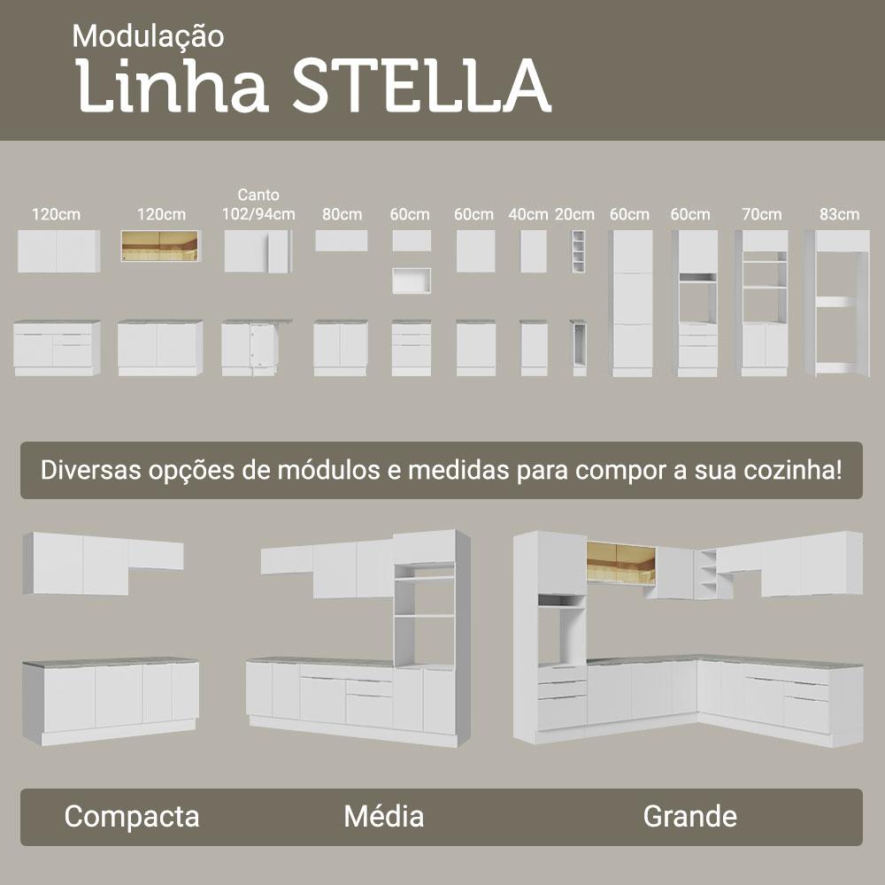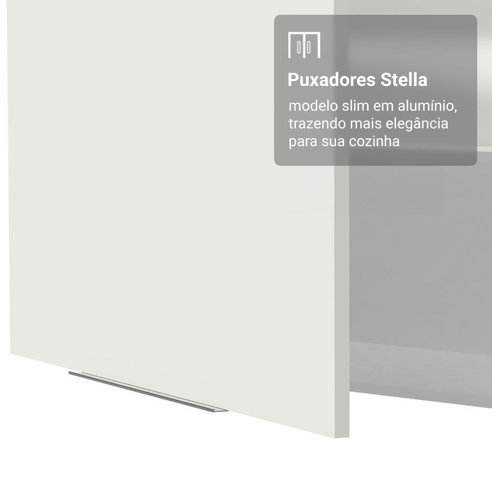 O armário aéreo com porta basculante da linha Stella é a escolha ideal para quem busca praticidade e elegância no dia a dia.O acabamento branco facilita a combinação com diversos estilos de decoração, deixando a cozinha mais leve e agradável. O puxador slim em alumínio adiciona um toque moderno ao design. Seu formato alongado e discreto valoriza o móvel, trazendo leveza e praticidade.A porta basculante oferece fácil acesso ao módulo e conta com sistema de pistão a gás, que mantém a porta suspensa quando está aberta, garantindo mais segurança e praticidade durante o uso.Medidas totais:- 33 cm de altura- 100 cm de largura- 31 cm de profundidadeInformações técnicas:- Material: MDP- Peso suportado: 10kgO que você recebe:- Um Armário Aéreo com porta basculanteCódigo do produto: G2510209TEÉ importante saber:- Imagens meramente ilustrativas, a decoração não acompanha o produto- A Madesa não disponibiliza serviço de montagem- O produto segue com manual de instalação e todas as ferragens necessárias para sua montagemA Madesa possui compromisso com a sustentabilidade. Geramos energia limpa em nossa própria usina, priorizamos fornecedores responsáveis e utilizamos plástico reciclado em nossa produção. Além disso, reinserimos sobras no ciclo de reciclagem e investimos no desenvolvimento de nossos colaboradores e da comunidade.Garantia: Este produto conta com 1 ano de garantia total, sendo 3 meses de garantia legal e 9 meses de garantia contratual. A garantia cobre exclusivamente defeitos de fabricação e vícios ocultos. Não estão cobertos: problemas decorrentes de montagem incorreta, uso inadequado, exposição à umidade, calor ou luz solar direta, modificações no produto ou desgaste natural.