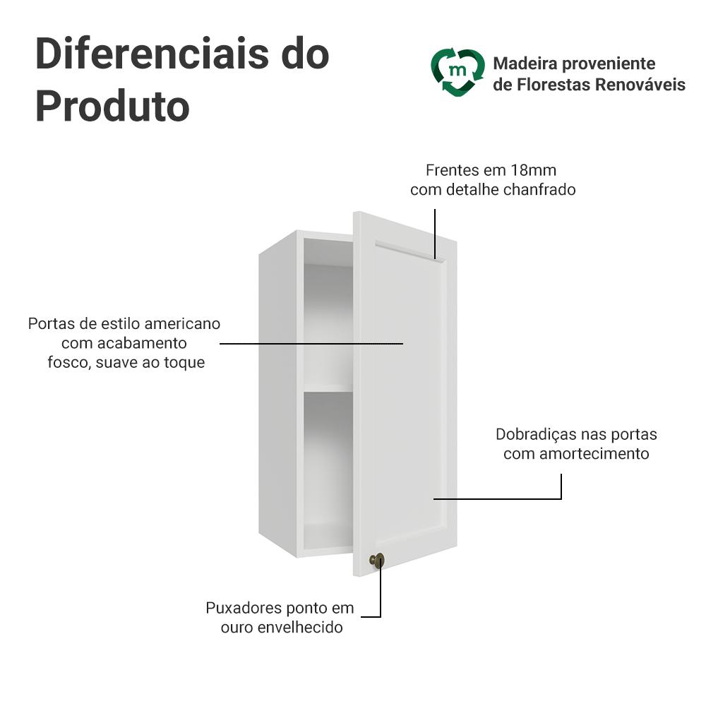 Aproveite ao máximo o espaço da sua cozinha com o Armário Aéreo de 35 cm com 1 Porta da Linha Vik da Madesa. Ideal para quem busca organização, esse armário compacto é perfeito para otimizar o armazenamento sem ocupar espaço no piso. Com um compartimento interno de fácil acesso, ele oferece o espaço necessário para guardar utensílios, louças ou mantimentos, mantendo tudo organizado e sempre à mão.O acabamento de alta resistência da estrutura e das portas é em Branco. Possui uma textura suave ao toque, trazendo leveza e sofisticação ao ambiente. O destaque vai para os puxadores ponto em ouro envelhecido, feitos com metal resistente. Outro diferencial está no detalhe chanfrado das frentes, que forma molduras elegantes e dá profundidade ao design, refletindo o estilo americano com um toque moderno. Além de trazer elegância, a linha Vik é funcional em cada detalhe. As portas possuem dobradiças com amortecimento, garantindo um fechamento suave e silencioso, para você organizar tudo que precisa com muito mais facilidade.Ideal para quem busca elegância, qualidade e funcionalidade para o dia a dia.>Medidas totais:- 66 cm de altura- 35 cm de largura- 31 cm de profundidadeO que você recebe:- Um (1) Armário aéreo com uma (1) portaCódigo do produto: G2535009VKÉ importante saber:- Imagens meramente ilustrativas, a decoração não acompanha o produto- A Madesa não disponibiliza serviço de montagem- O produto segue com manual de instalação e todas as ferragens necessárias para sua montagemA Madesa se dedica à sustentabilidade com várias iniciativas: temos uma usina própria que gera energia para uma das fábricas. Priorizamos fornecedores responsáveis com o meio ambiente. Todo o plástico utilizado na produção é reciclado, e as sobras também são reaproveitadas. Investimos no desenvolvimento de nossos colaboradores e em ações que beneficiem a comunidade.