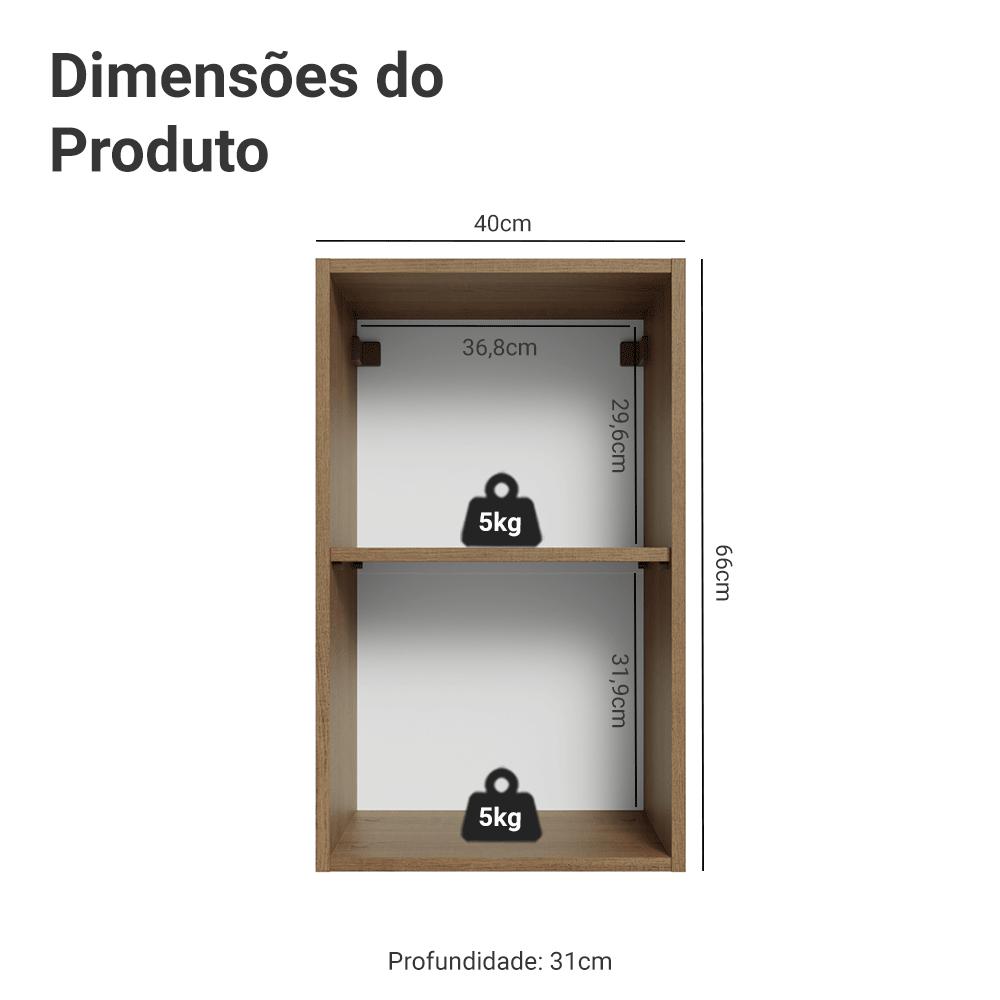 Aproveite ao máximo o espaço da sua cozinha com o Armário Aéreo de 40 cm com 1 Porta da Linha Vik da Madesa. Ideal para quem busca organização, esse armário compacto é perfeito para otimizar o armazenamento sem ocupar espaço no piso. Com um compartimento interno de fácil acesso, ele oferece o espaço necessário para guardar utensílios, louças ou mantimentos, mantendo tudo organizado e sempre à mão.O acabamento de alta resistência da estrutura é em tom amadeirado Rustic e das portas em Cinza. Possui uma textura suave ao toque, trazendo leveza e sofisticação ao ambiente. O destaque vai para os puxadores ponto em ouro envelhecido, feitos com metal resistente. Outro diferencial está no detalhe chanfrado das frentes, que forma molduras elegantes e dá profundidade ao design, refletindo o estilo americano com um toque moderno. Além de trazer elegância, a linha Vik é funcional em cada detalhe. As portas possuem dobradiças com amortecimento, garantindo um fechamento suave e silencioso, para você organizar tudo que precisa com muito mais facilidade.Ideal para quem busca elegância, qualidade e funcionalidade para o dia a dia.Medidas totais:- 66 cm de altura- 40 cm de largura- 31 cm de profundidadeO que você recebe:- Um (1) Armário aéreo com uma (1) portaCódigo do produto: G25400F9VKÉ importante saber:- Imagens meramente ilustrativas, a decoração não acompanha o produto- A Madesa não disponibiliza serviço de montagem- O produto segue com manual de instalação e todas as ferragens necessárias para sua montagemA Madesa se dedica à sustentabilidade com várias iniciativas: temos uma usina própria que gera energia para uma das fábricas. Priorizamos fornecedores responsáveis com o meio ambiente. Todo o plástico utilizado na produção é reciclado, e as sobras também são reaproveitadas. Investimos no desenvolvimento de nossos colaboradores e em ações que beneficiem a comunidade.