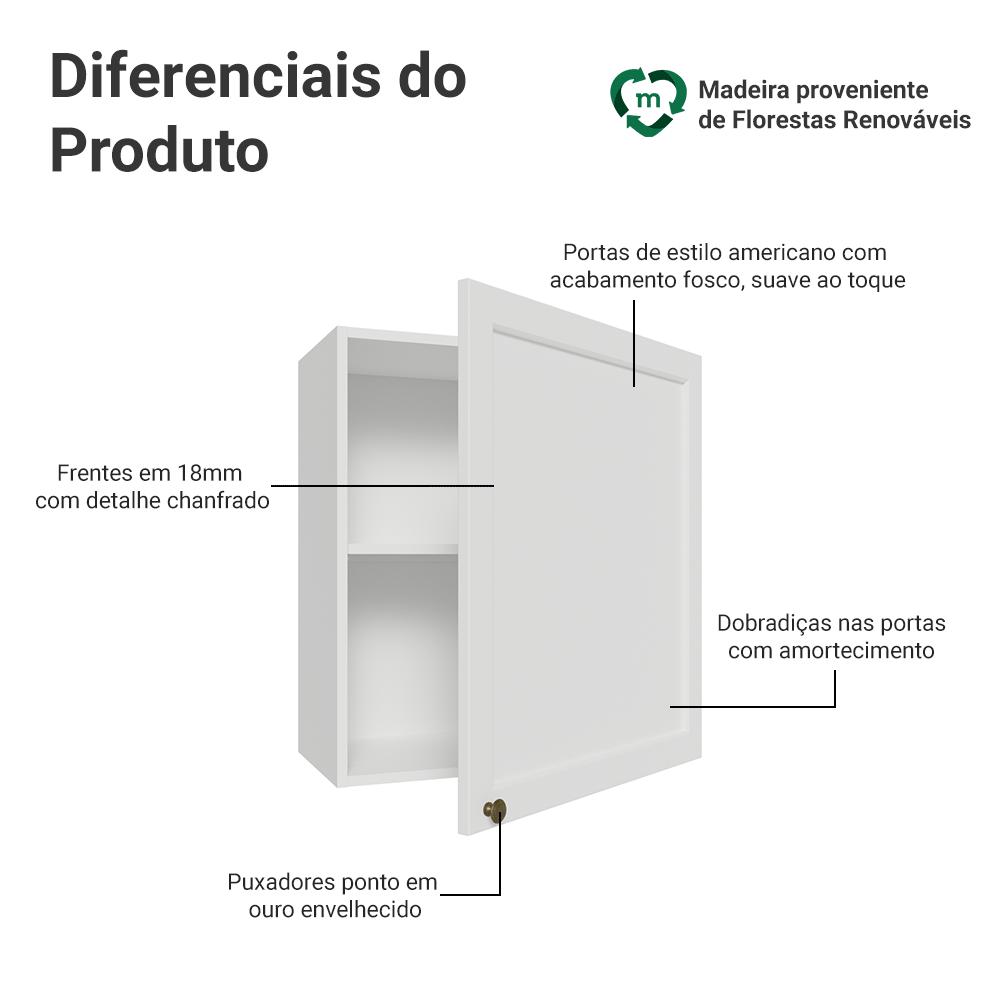 Aproveite ao máximo o espaço da sua cozinha com o Armário Aéreo de 60 cm com 1 Porta da Linha Vik da Madesa. Ideal para quem busca organização, esse armário compacto é perfeito para otimizar o armazenamento sem ocupar espaço no piso. Com um compartimento interno de fácil acesso, ele oferece o espaço necessário para guardar utensílios, louças ou mantimentos, mantendo tudo organizado e sempre à mão.O acabamento de alta resistência da estrutura e das portas é em Branco. Possui uma textura suave ao toque, trazendo leveza e sofisticação ao ambiente. O destaque vai para os puxadores ponto em ouro envelhecido, feitos com metal resistente. Outro diferencial está no detalhe chanfrado das frentes, que forma molduras elegantes e dá profundidade ao design, refletindo o estilo americano com um toque moderno. Além de trazer elegância, a linha Vik é funcional em cada detalhe. As portas possuem dobradiças com amortecimento, garantindo um fechamento suave e silencioso, para você organizar tudo que precisa com muito mais facilidade.Ideal para quem busca elegância, qualidade e funcionalidade para o dia a dia.>Medidas totais:- 66 cm de altura- 60 cm de largura- 31 cm de profundidadeO que você recebe:- Um (1) Armário aéreo com uma (1) portaCódigo do produto: G2560109VKÉ importante saber:- Imagens meramente ilustrativas, a decoração não acompanha o produto- A Madesa não disponibiliza serviço de montagem- O produto segue com manual de instalação e todas as ferragens necessárias para sua montagemA Madesa se dedica à sustentabilidade com várias iniciativas: temos uma usina própria que gera energia para uma das fábricas. Priorizamos fornecedores responsáveis com o meio ambiente. Todo o plástico utilizado na produção é reciclado, e as sobras também são reaproveitadas. Investimos no desenvolvimento de nossos colaboradores e em ações que beneficiem a comunidade.