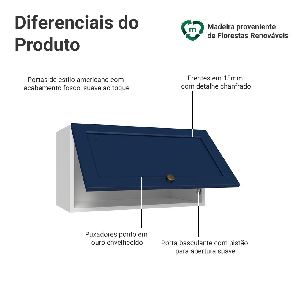 Armário Aéreo 60 cm 1 Porta Basculante Branco/Azul Vik Madesa