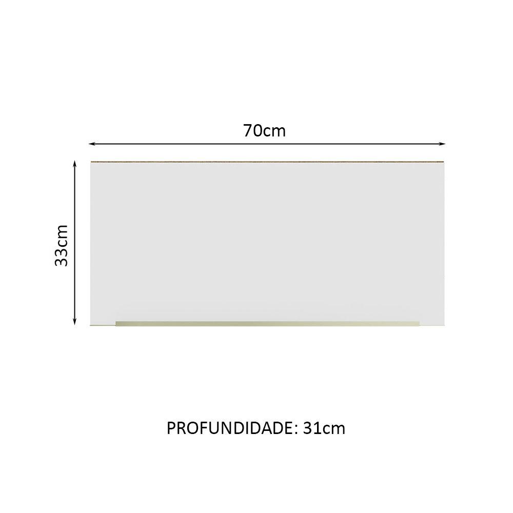 Este Armário Aéreo de 70 cm da linha Lux da Madesa é desenvolvido com materiais de alta qualidade, como puxadores em alumínio e dobradiças com amortecimento para o fechamento suave da portaUm dos grandes diferenciais desta versão é o acabamento em Branco Veludo na porta, uma pintura especial e sofisticada, com toque liso e aveludado. Pode ser utilizado para ampliar sua cozinha e se destaca pela praticidade e pelo bom espaço interno para a organização de louças e utensílios.O acabamento da estrutura é no padrão amadeirado Rustic e a porta é em Branco Veludo. É feito em Pintura Poliéster ecológica, com 7 camadas que aumentam a qualidade e durabilidade do produto.O armário pode ser combinado com outros módulos e com todas as cozinhas da linha Lux da Madesa.Medidas totais:- 33 cm de altura- 70 cm de largura- 31 cm de profundidadeItens inclusos:- Um (1) Aéreo com uma (1) porta basculanteCódigo do produto: G25702H8LXObs.:- Imagens meramente ilustrativas- O armário precisa ser fixado na parede- A Madesa não disponibiliza serviço de montagem- O produto segue com manual de instalação e todas as ferragens necessárias para sua montagem.1 – O produto vem montado? Se não, vocês realizam a montagem?R.: A Madesa não disponibiliza serviço de montagem. Todos os produtos seguem com manual de instalação e as ferragens necessárias. Alguns produtos possuem vídeo explicando o passo a passo da montagem.A Madesa se dedica à sustentabilidade com várias iniciativas: temos uma usina própria para gerar energia que abastece uma de nossas fábricas. Selecionamos nossos fornecedores, priorizando aqueles que possuem um compromisso com a sustentabilidade e proteção do meio ambiente. Todo o plástico utilizado no setor produtivo é proveniente de reciclagem e as suas sobras são encaminhadas ao fornecedor que os recicla. Também investimos no desenvolvimento contínuo de nossos colaboradores e em ações educacionais que beneficiem a comunidade.
