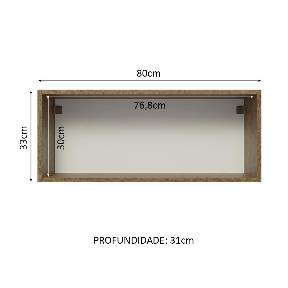 O Armário Aéreo Madesa Glamy 80 cm é feito com materiais de alta qualidade e Pintura Poliéster com 7 camadas protetoras que aumentam a resistência e durabilidade do móvel.Conta com uma porta basculante com puxador em alumínio, dobradiças metálicas com amortecimento que proporciona um fechamento suave e pistão a gás que mantém a porta suspensa. O espaço interno é livre, com área par armazenamento de mantimentos e utensílios.O acabamento da estrutura interna e externa é no padrão amadeirado Rustic, a porta é preta e parte interna das costas é branca. A pintura é ecológica, isenta de vapores que vão para a atmosfera.A linha de cozinhas Glamy é totalmente modulada. É possível combinar este armário com outros módulos disponíveis na linha. Inclusive combinando diferentes cores, para você criar a cozinha dos seus sonhos.Imagem meramente ilustrativa. A decoração não acompanha o produto.Itens inclusos:- Um (1) Armário Aéreo com 33 cm de altura x 80 cm de largura x 31 cm de profundidade.Código do produto: G258047KGLObs.: A Madesa não disponibiliza serviço de montagem. O produto segue com manual de instalação e todas as ferragens necessárias para sua montagem.1-O produto é novo ou usado?R.: Todos os produtos da Madesa são novos, enviados da nossa fábrica diretamente para as casas de nossos clientes.2-O produto vem montado? Se não, vocês realizam a montagem?R.: A Madesa não disponibiliza serviço de montagem. Todos os produtos seguem com manual de instalação e as ferragens necessárias. Alguns produtos possuem vídeo explicando o passo a passo da montagem.3-Vocês possuem loja física? Posso retirar meu produto em mãos?R.: Não possuímos loja física, apenas loja virtual. Confira as opções de envio ao colocar o seu CEP.4-Qual é o valor do envio? Posso pagar separadamente?R.: O valor do envio é calculado com base no peso e volume do produto, e no CEP de destino. Você pode calcular o valor e prazo de entrega no simulador.5-A Madesa entrega em todo Brasil? Como é feita a entrega?R.: Sim, entregamos no Brasil inteiro através de transportadoras parceiras.6-O produto acompanha Nota Fiscal?R.: Sim, todos os produtos são entregues com suas respectivas notas fiscais.7-Os produtos possuem garantia?R.: Sim. A Madesa oferece 3 meses de garantia para defeitos de fabricação.A Madesa se dedica à sustentabilidade com várias iniciativas: temos uma usina própria para gerar energia que abastece uma de nossas fábricas. Selecionamos nossos fornecedores, priorizando aqueles que possuem um compromisso com a sustentabilidade e proteção do meio ambiente. Todo o plástico utilizado no setor produtivo é proveniente de reciclagem e as suas sobras são encaminhadas ao fornecedor que os recicla. Também investimos no desenvolvimento contínuo de nossos colaboradores e em ações educacionais que beneficiem a comunidade.