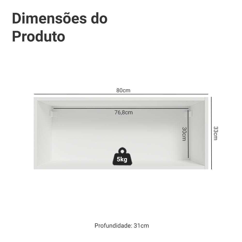 Otimize o espaço da sua cozinha com o Armário Aéreo de 80 cm da Linha Vik da Madesa, possui uma porta basculante que facilita o acesso rápido e prático aos seus utensílios ou mantimentos. Ideal para quem valoriza funcionalidade, esse armário oferece um interior espaçoso e perfeito para manter tudo ao alcance das mãos sem ocupar espaço no piso.O acabamento de alta resistência da estrutura é em Branco e da porta em Cinza. Possui uma textura suave ao toque, trazendo leveza e sofisticação ao ambiente. O destaque vai para os puxadores ponto em ouro envelhecido, feitos com metal resistente. Outro diferencial está no detalhe chanfrado das frentes, que forma molduras elegantes e dá profundidade ao design, refletindo o estilo americano com um toque moderno. Além de trazer elegância, a linha Vik é funcional em cada detalhe. As portas basculantes, com um sistema de pistão a gás, permanecem suspensas quando abertas, proporcionando mais praticidade e segurança no uso diário, facilitando a organização de tudo o que você precisa.Ideal para quem busca elegância, qualidade e funcionalidade para o dia a dia.Medidas totais:- 33 cm de altura- 80 cm de largura- 31 cm de profundidadeO que você recebe:- Um (1) Armário aéreo com uma (1) porta basculanteCódigo do produto: G25804F8VKÉ importante saber:- Imagens meramente ilustrativas, a decoração não acompanha o produto- A Madesa não disponibiliza serviço de montagem- O produto segue com manual de instalação e todas as ferragens necessárias para sua montagemA Madesa se dedica à sustentabilidade com várias iniciativas: temos uma usina própria que gera energia para uma das fábricas. Priorizamos fornecedores responsáveis com o meio ambiente. Todo o plástico utilizado na produção é reciclado, e as sobras também são reaproveitadas. Investimos no desenvolvimento de nossos colaboradores e em ações que beneficiem a comunidade.