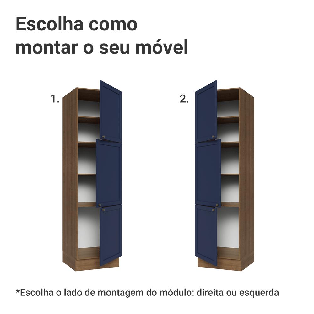 Paneleiro 60 cm 3 Portas Rustic/Azul Vik Madesa