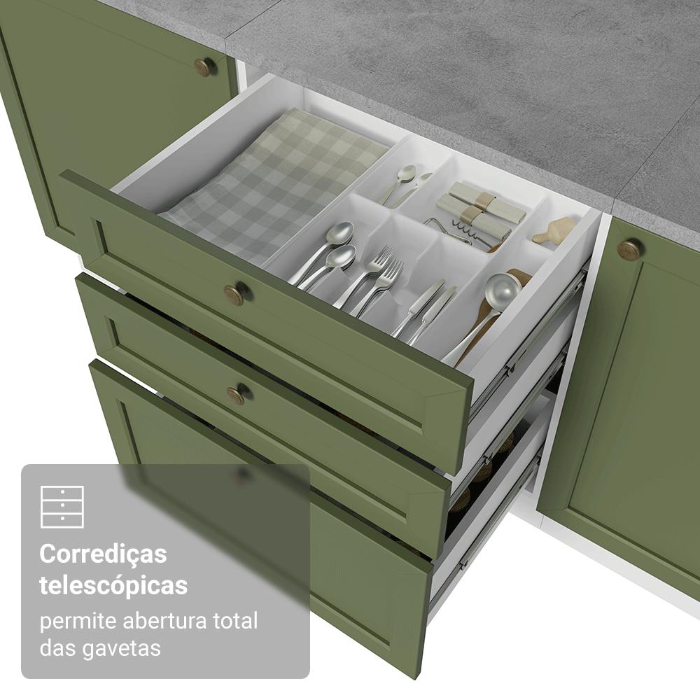 Torre Quente 60 cm 1 Porta 3 Gavetas Branco/Verde Vik Madesa